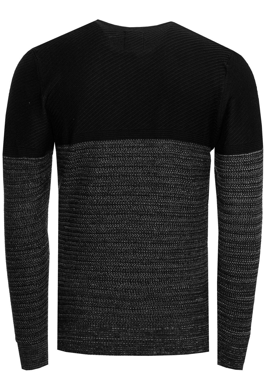 Cool men's fine knit sweater with color block, crew neck sweater 13376 Black