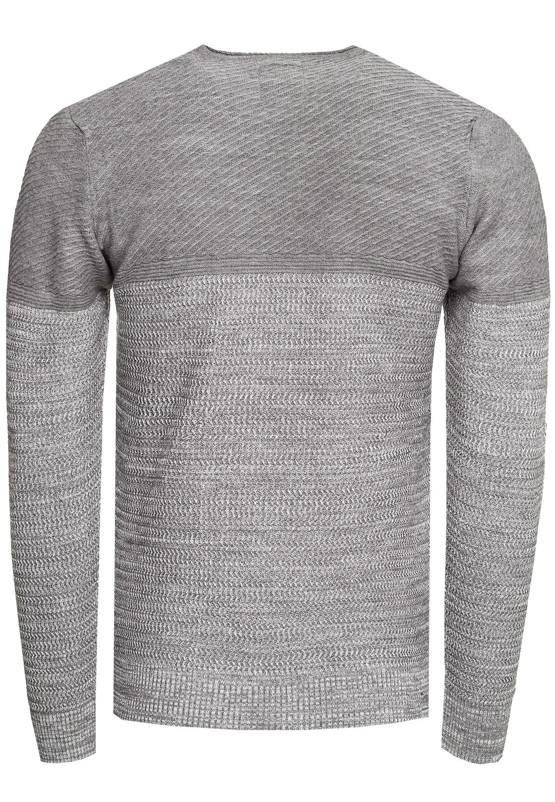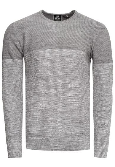 Cool men's fine knit sweater with color block, crew neck sweater 13376 Grey