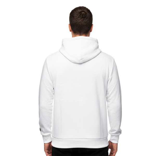 Cozy men's hoodie with cool front detail. Hooded pullover sweater 19153 White