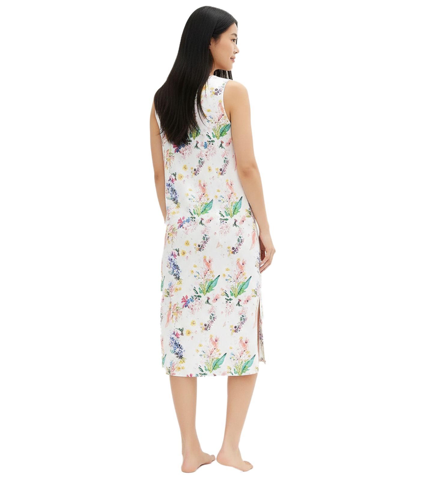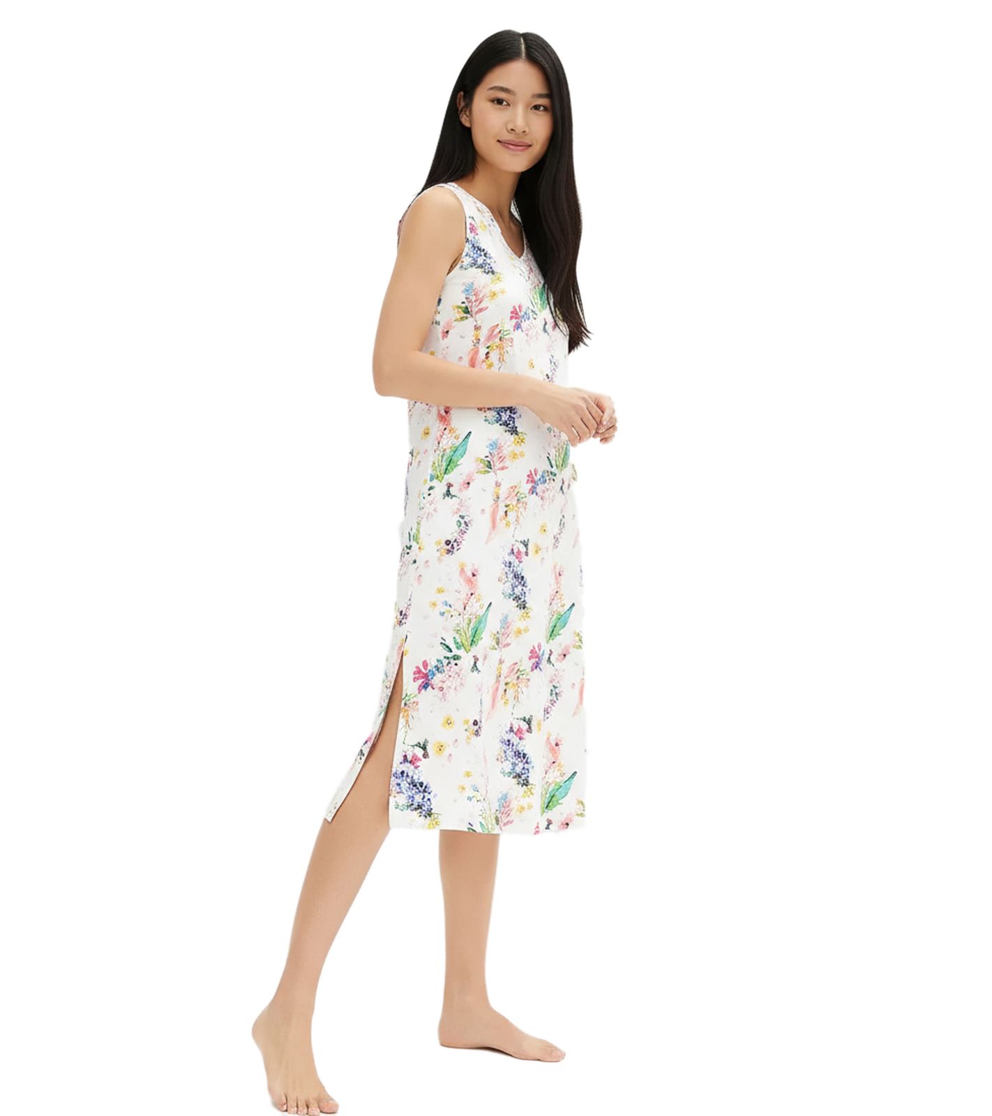 -92% Cozy Women's Nightdress with Floral Print, Cotton Nightgown 921632 White/Multicolor