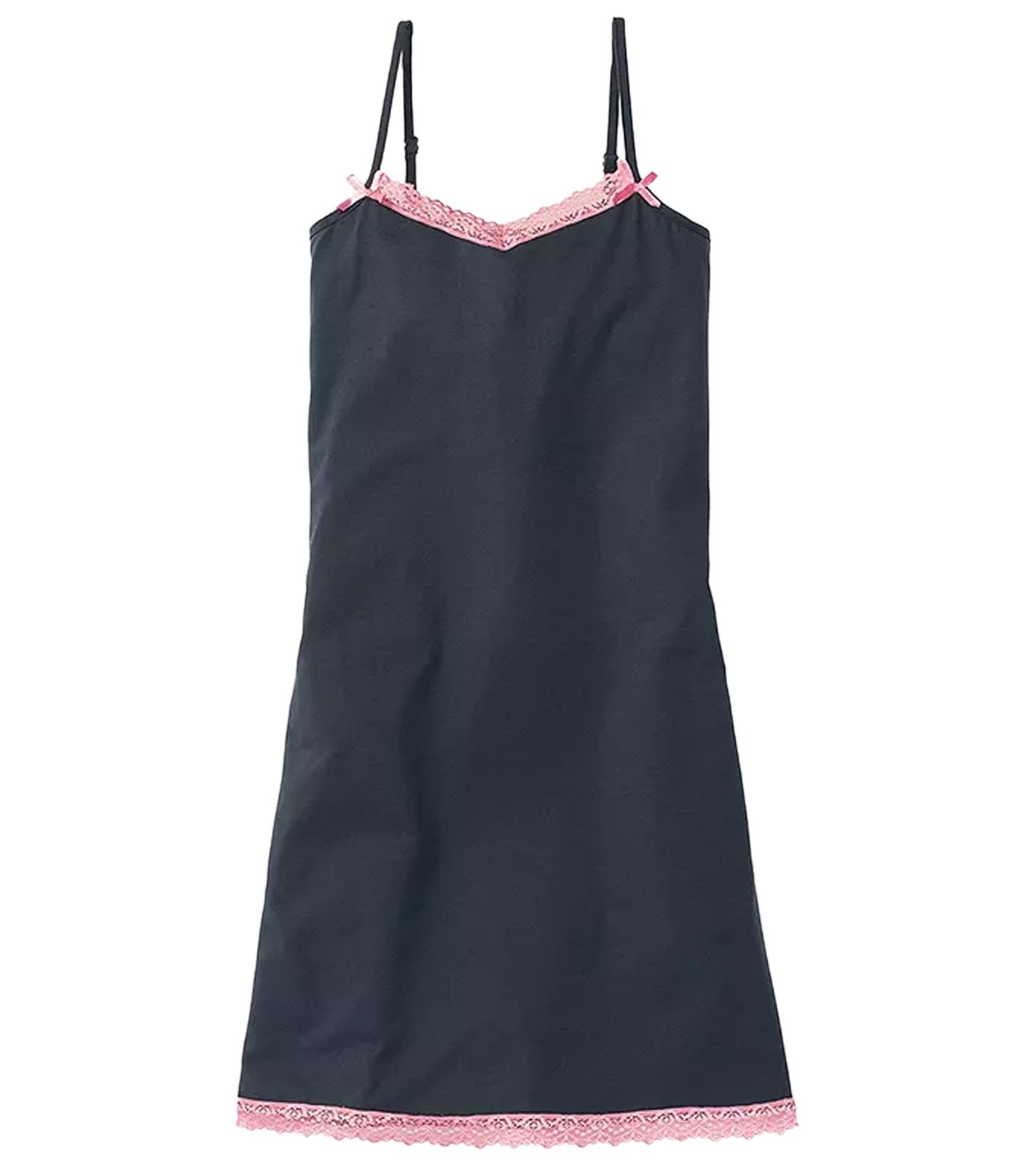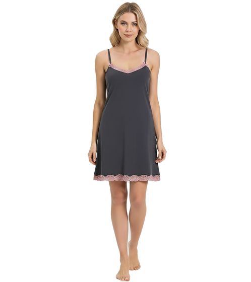 This nightgown offers women a light and airy feel: It features a relaxed fit. A delicate lace trim in a contrasting color adorns the hem and neckline. Two pretty bows complete the tasteful look. The narrow spaghetti straps are adjustable. Lace: 93% polyamide, 7% elastane