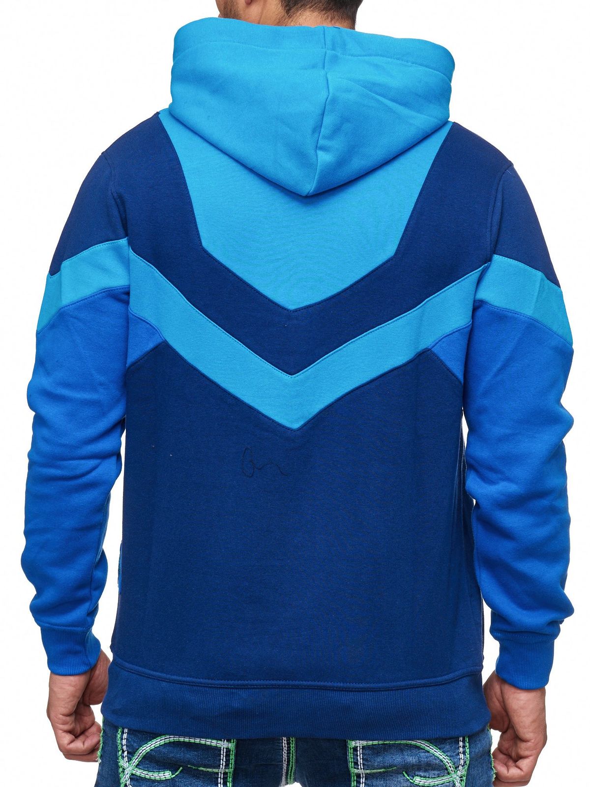 Dynamic men's colorblock hoodie, hooded pullover with kangaroo pocket, sporty sweater 19044 turquoise