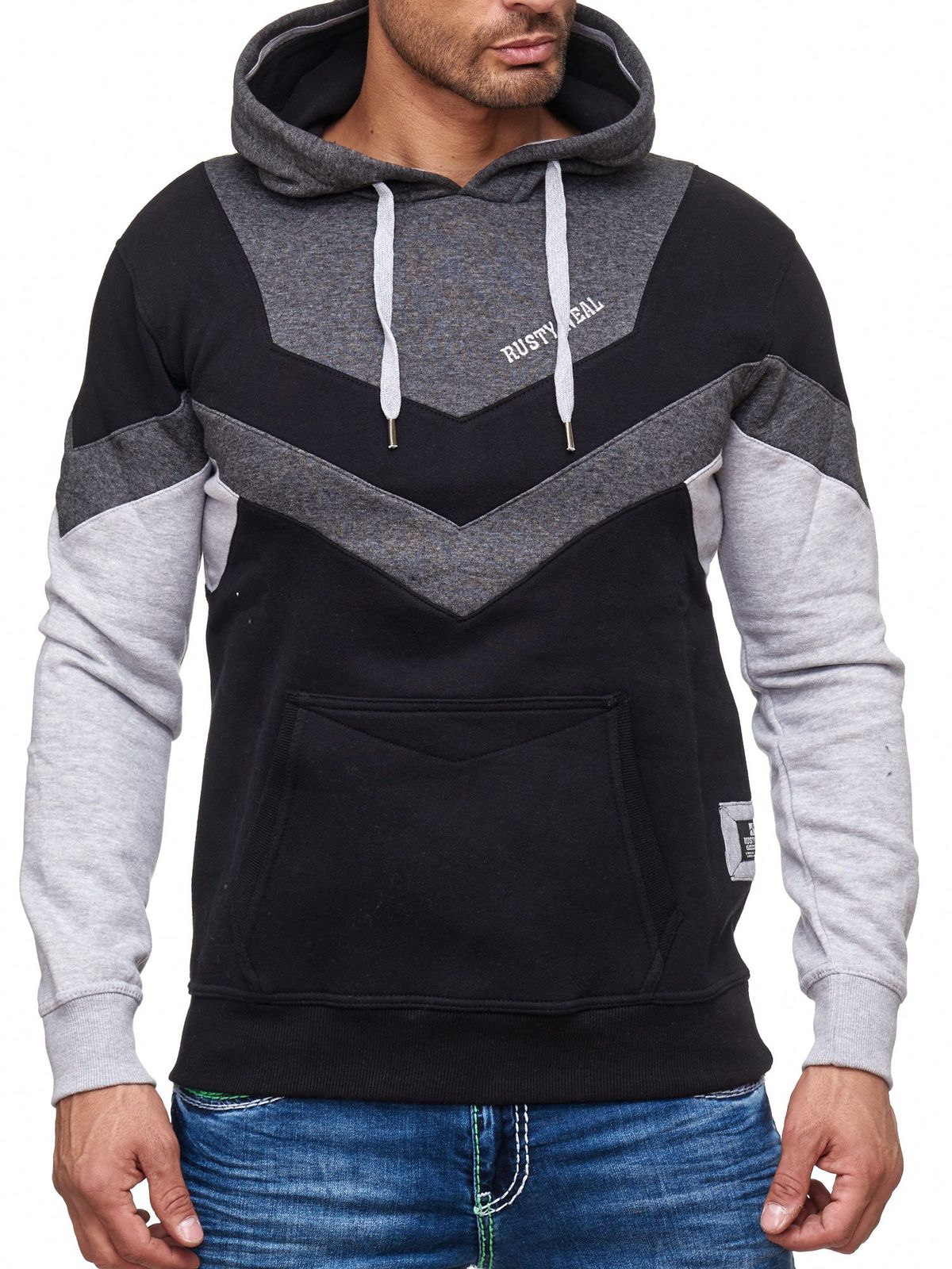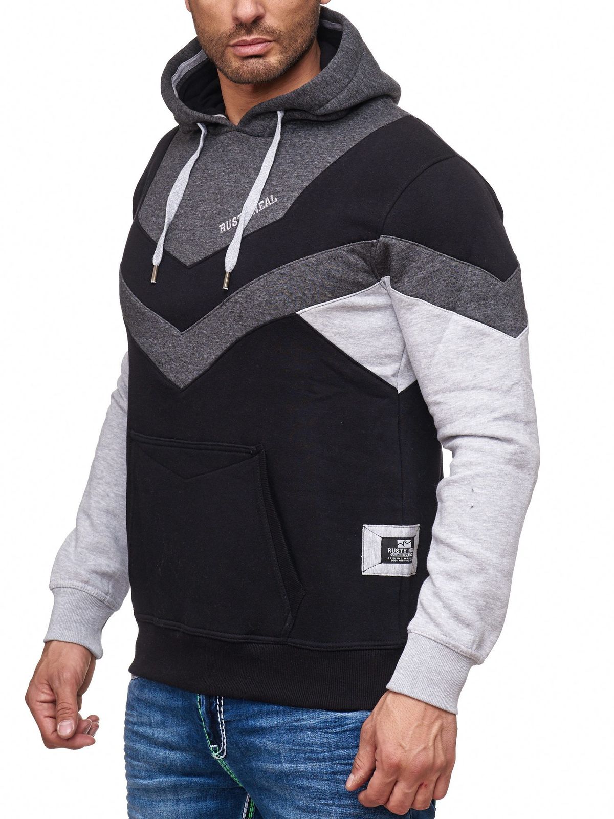 Dynamic men's hoodie in colorblock design, hooded pullover with kangaroo pocket, sporty sweater 19044 anthracite