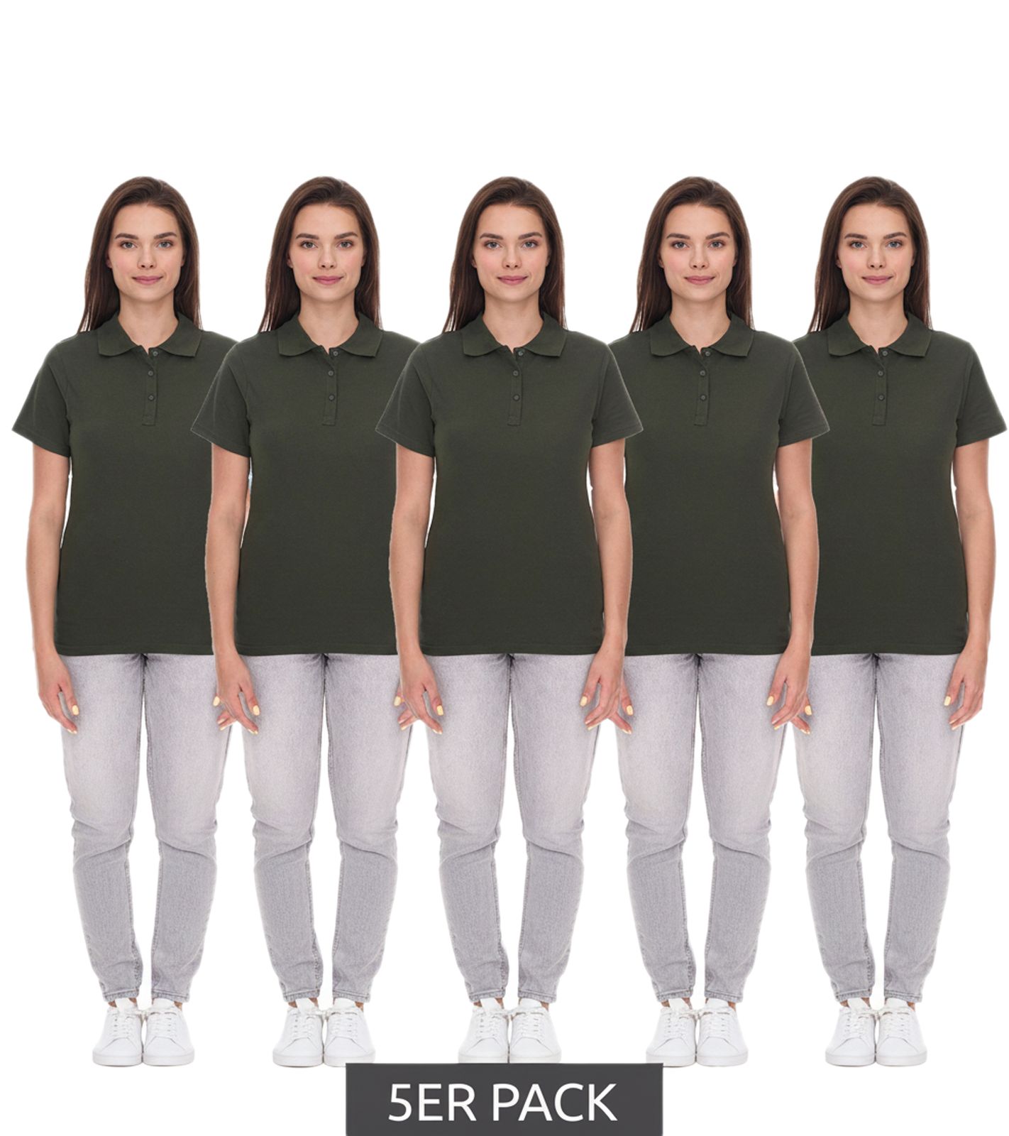 ELEVATE Helios Women's Polo Shirt, Cotton Pique Knit, 180 g/m², 3810770, Army Green, Dark Green, 5-Pack