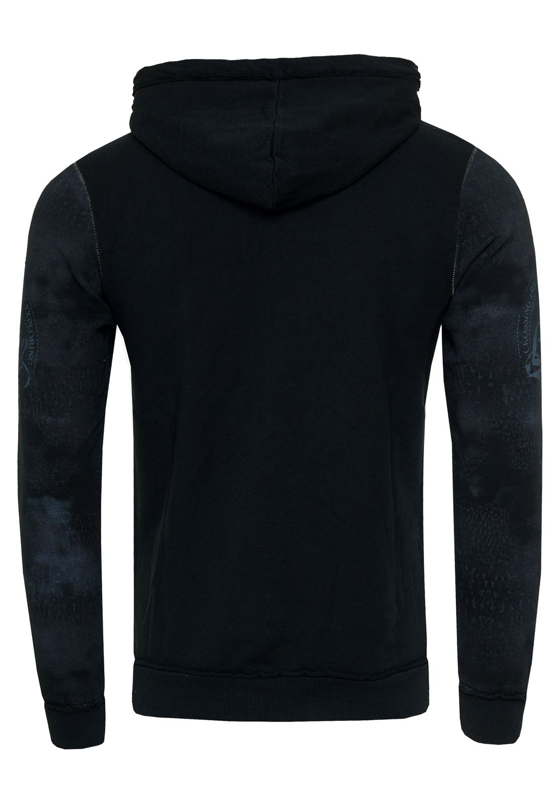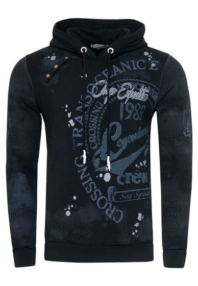 Exclusive men's hooded pullover, oil-washed hoodie with button placket and sea print sweater 19128 Black