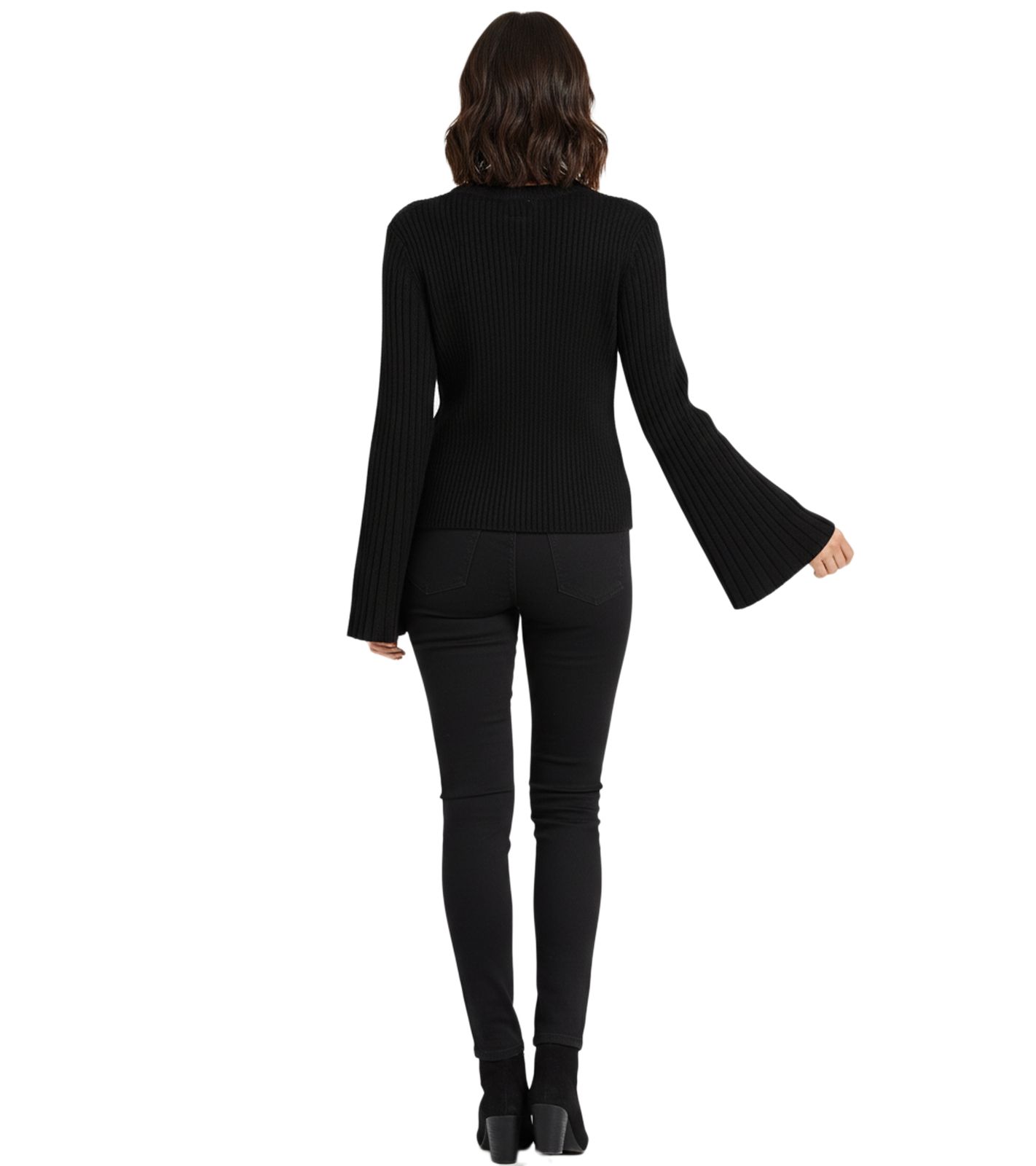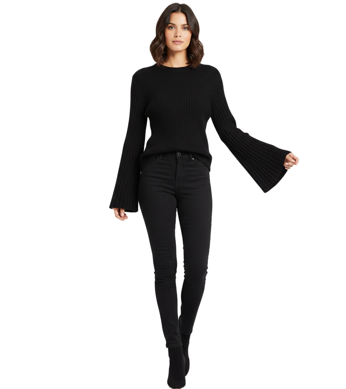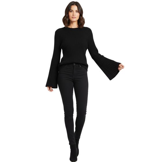 Extravagant Women's Knit Sweater with Bell Sleeves, Fine Knit, Everyday Sweater 908376 Black