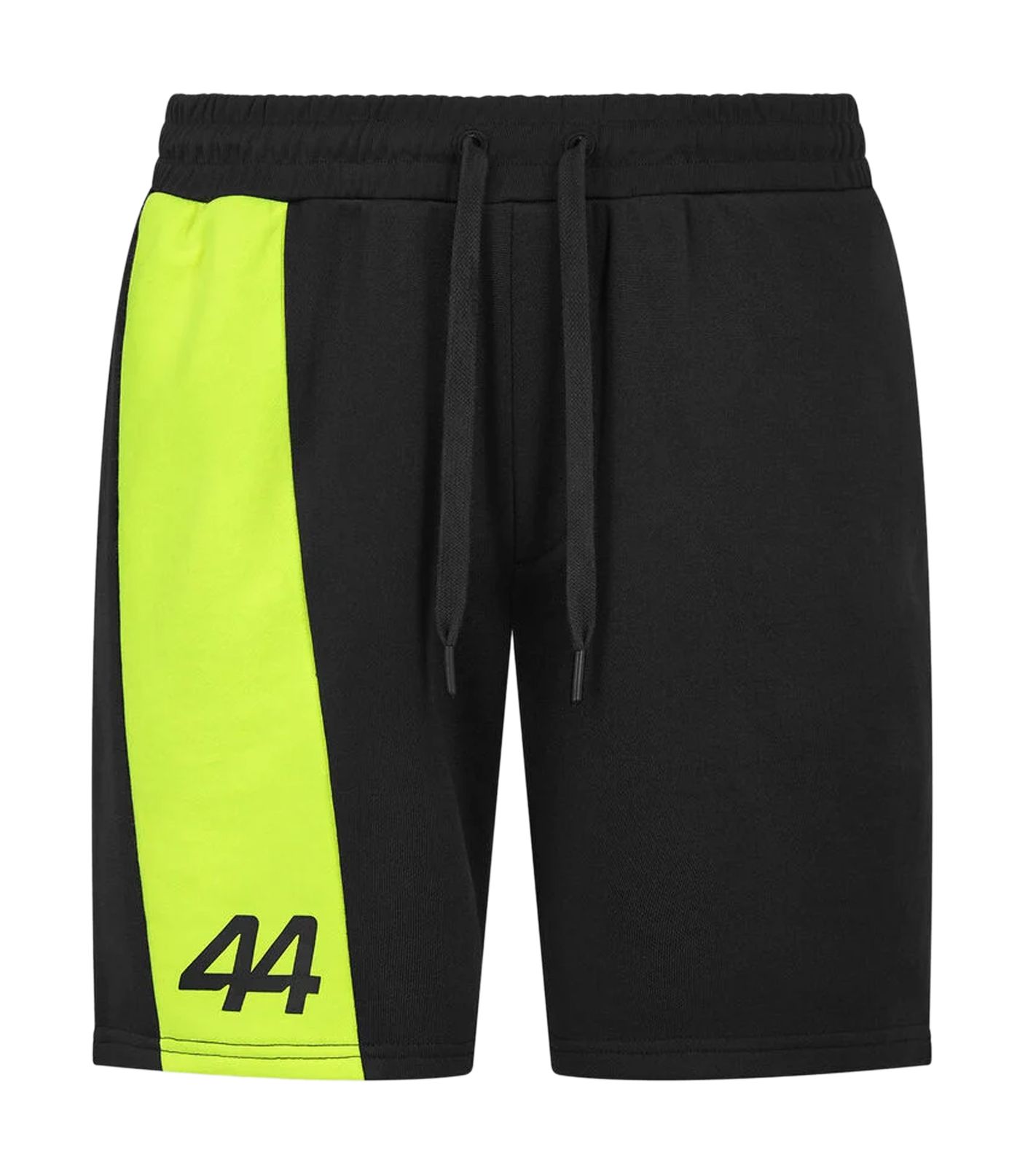 The Lewis Hamilton sweat shorts have the same design as the LH44 fanwear collection and feature a vertical neon yellow contrast stripe