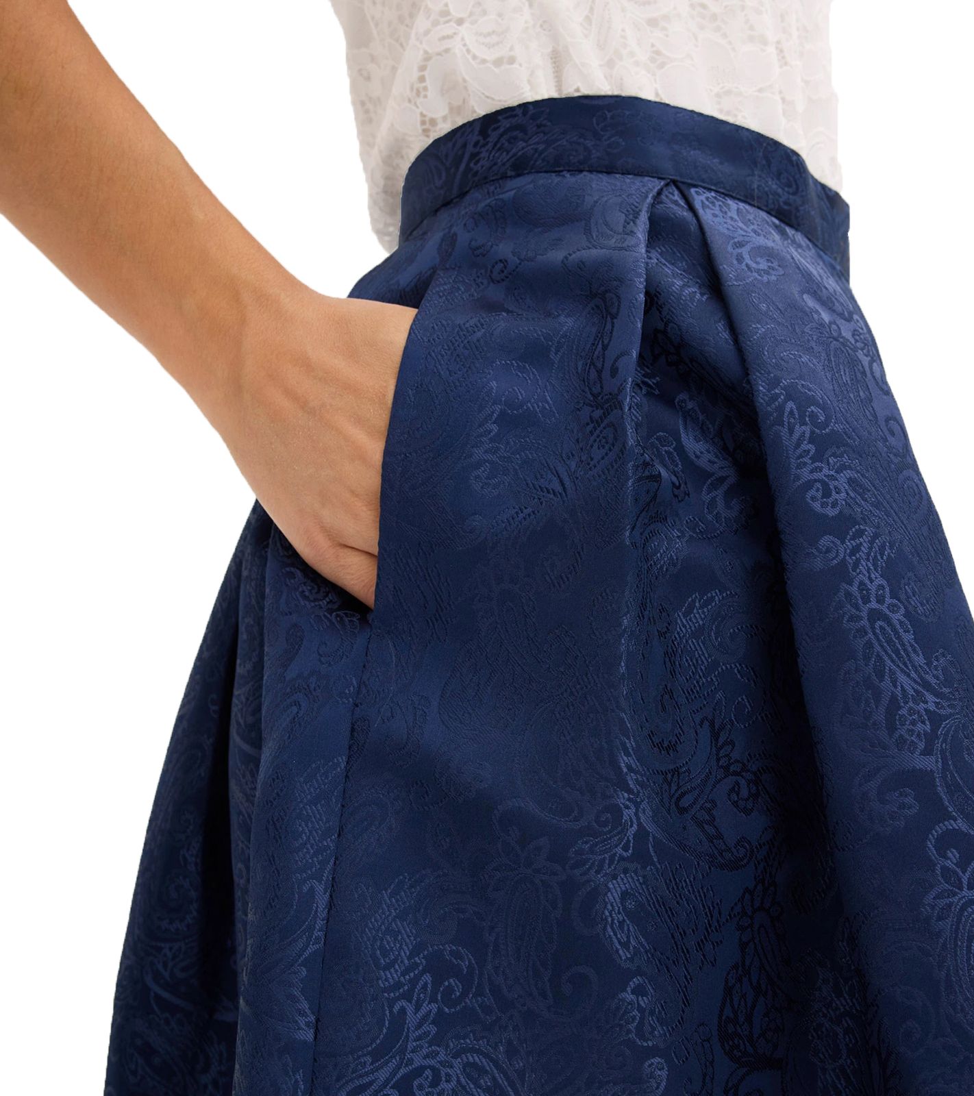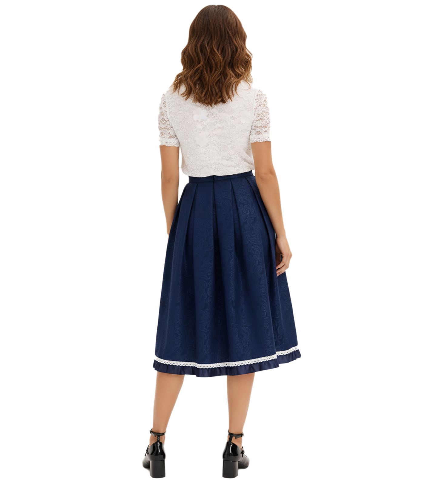 Fashionable Women's Dirndl Skirt, Traditional Skirt with Paisley and Lace 905168 Dark Blue
