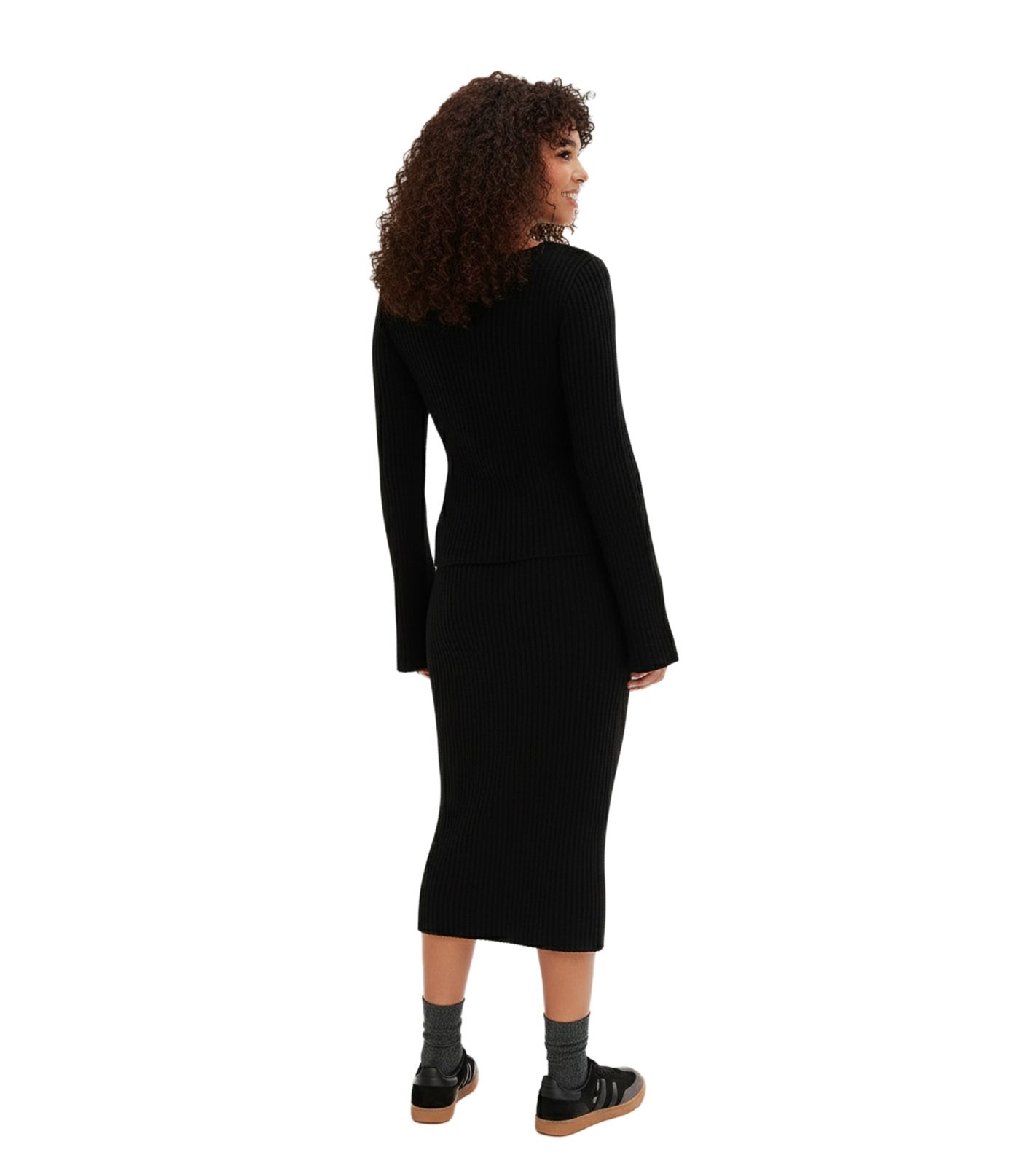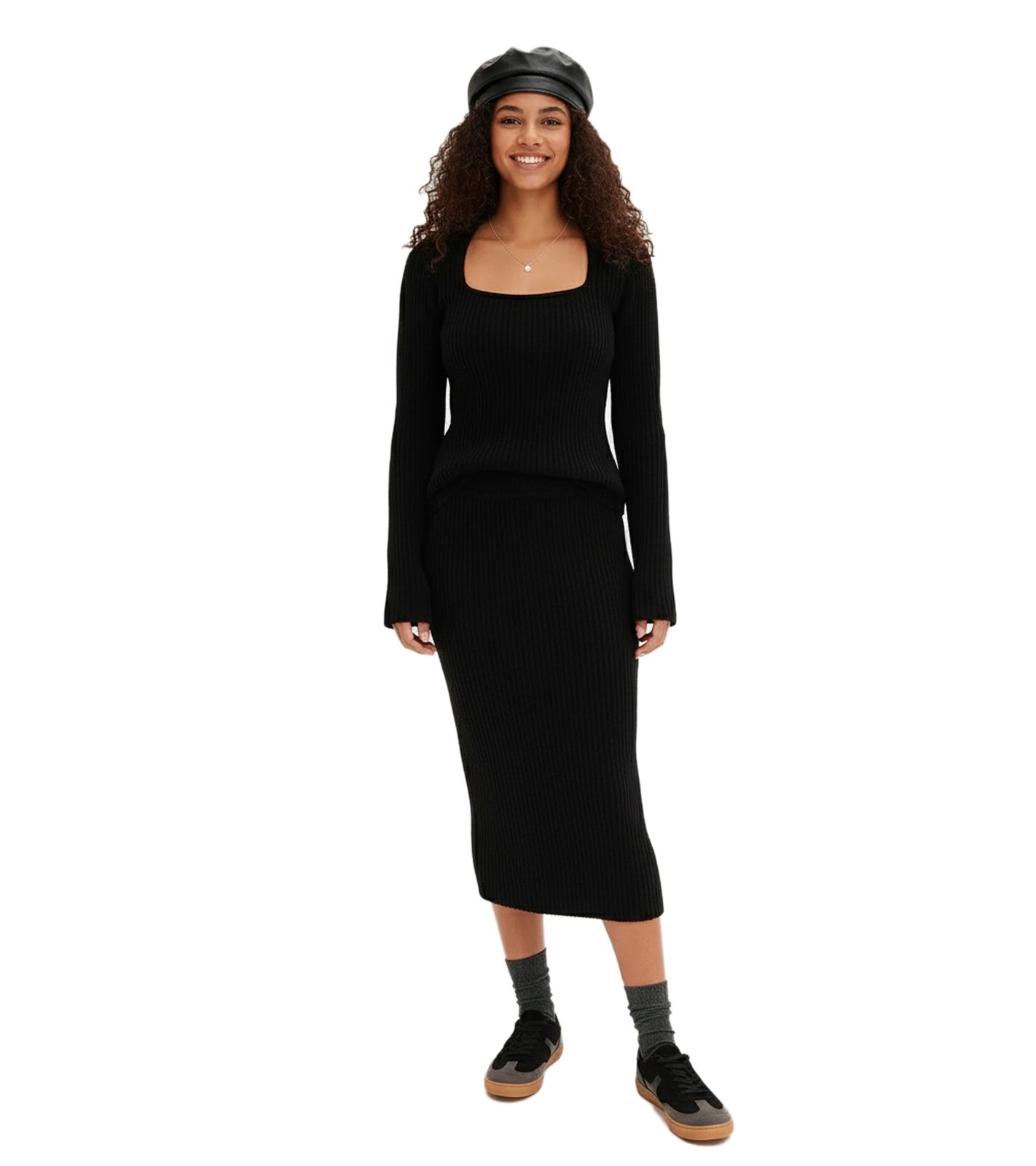 Figure-hugging women's knit sweater with square neckline, everyday sweater 915030 Black
