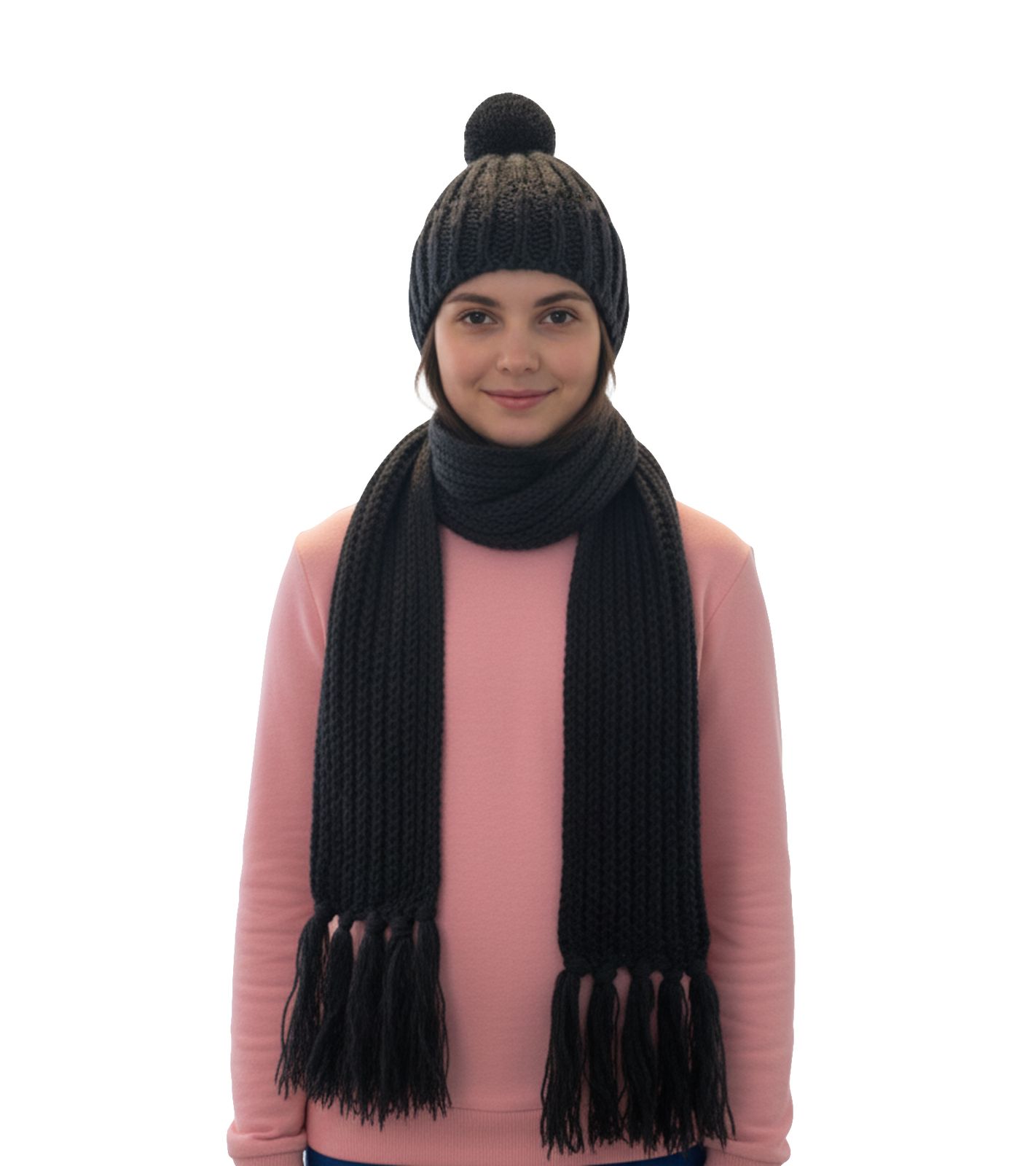 Hat and Scarf: Long Knitted Scarf for Children with Bobble Hat SF157827PLB Gray