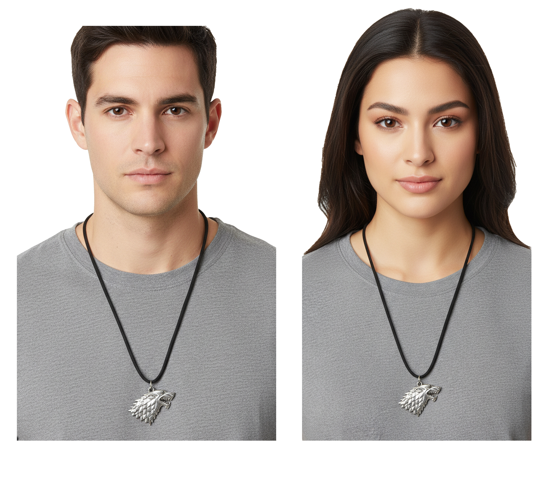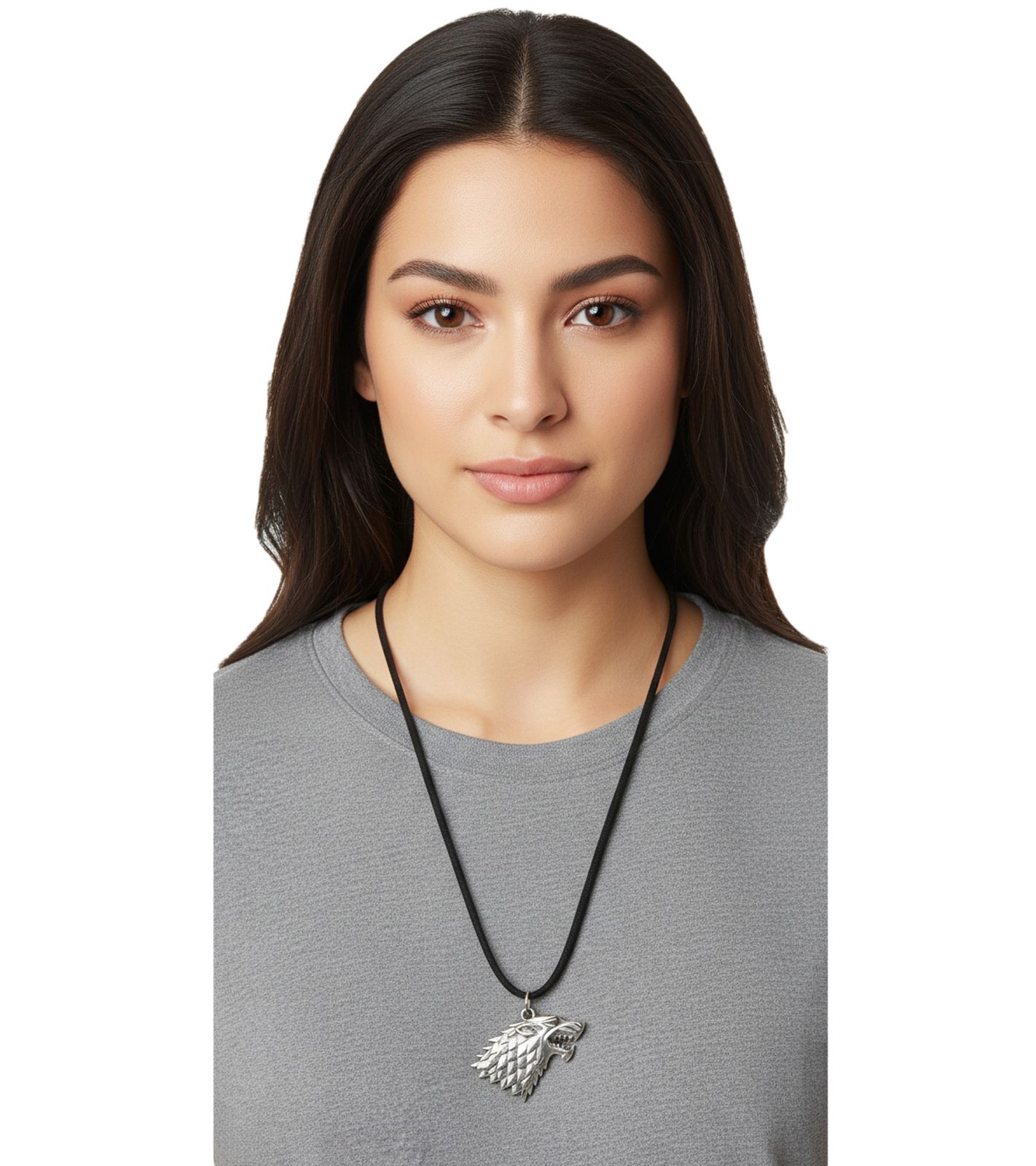 This pendant, featuring the iconic direwolf charm, serves as a subtle yet powerful statement piece.