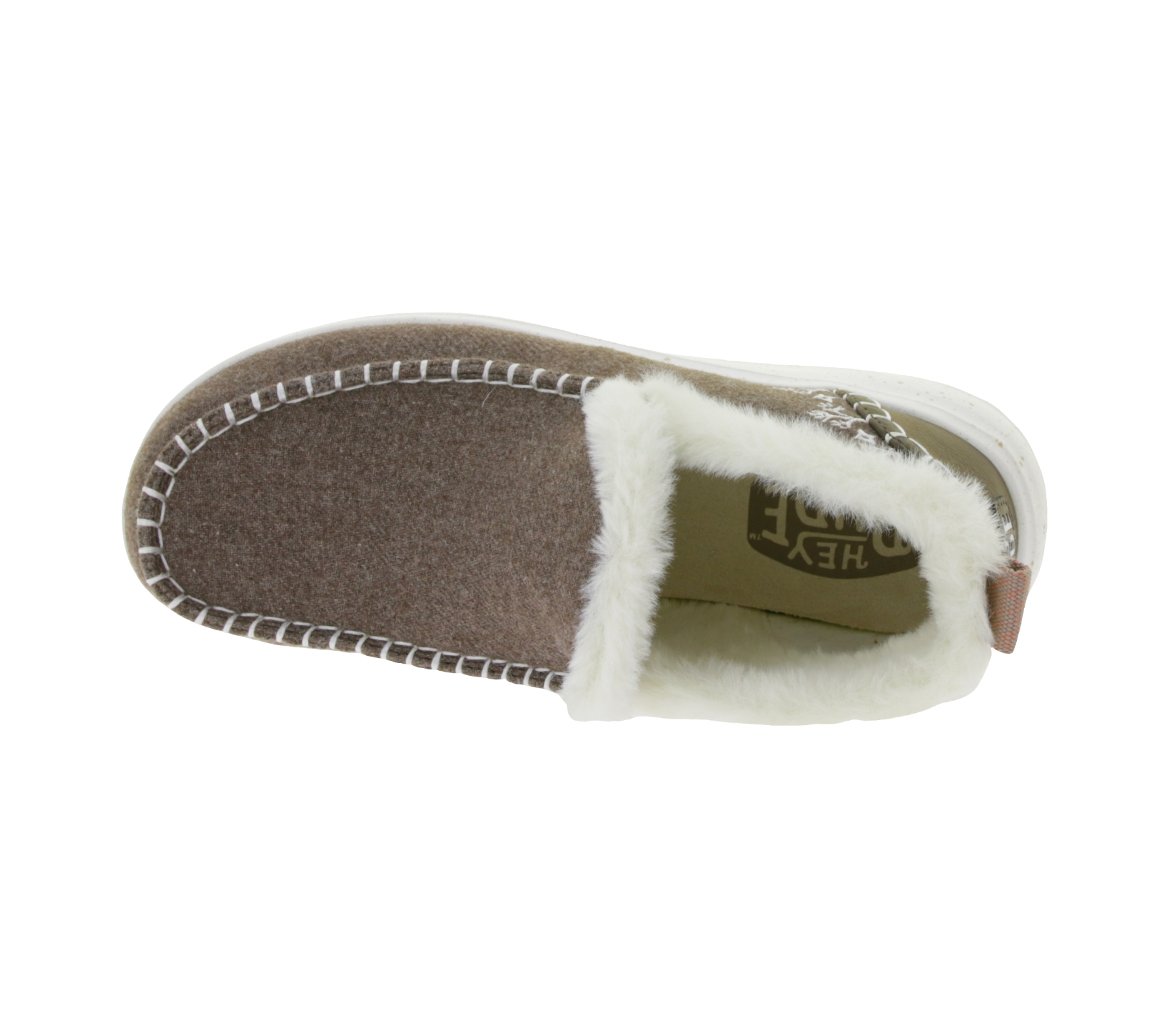 HEY DUDE Denny Faux Women's Slip-On Ankle Boots with Faux Shearling Lining and Removable Footbed 40208-267 Brown