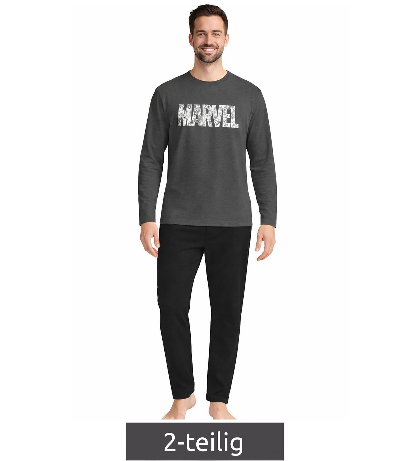 MARVEL Men's 2-Piece Pajama Set with MARVEL Motif - Cotton Pajamas - Loungewear - Includes Top and Bottom - Dark Gray/Black