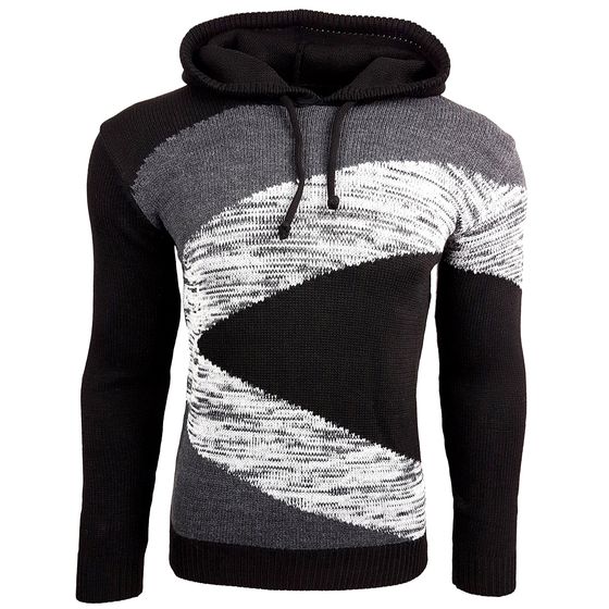 Men's contrasting color-blocked hooded sweatshirt, slim fit hoodie, 13245, black/anthracite/grey