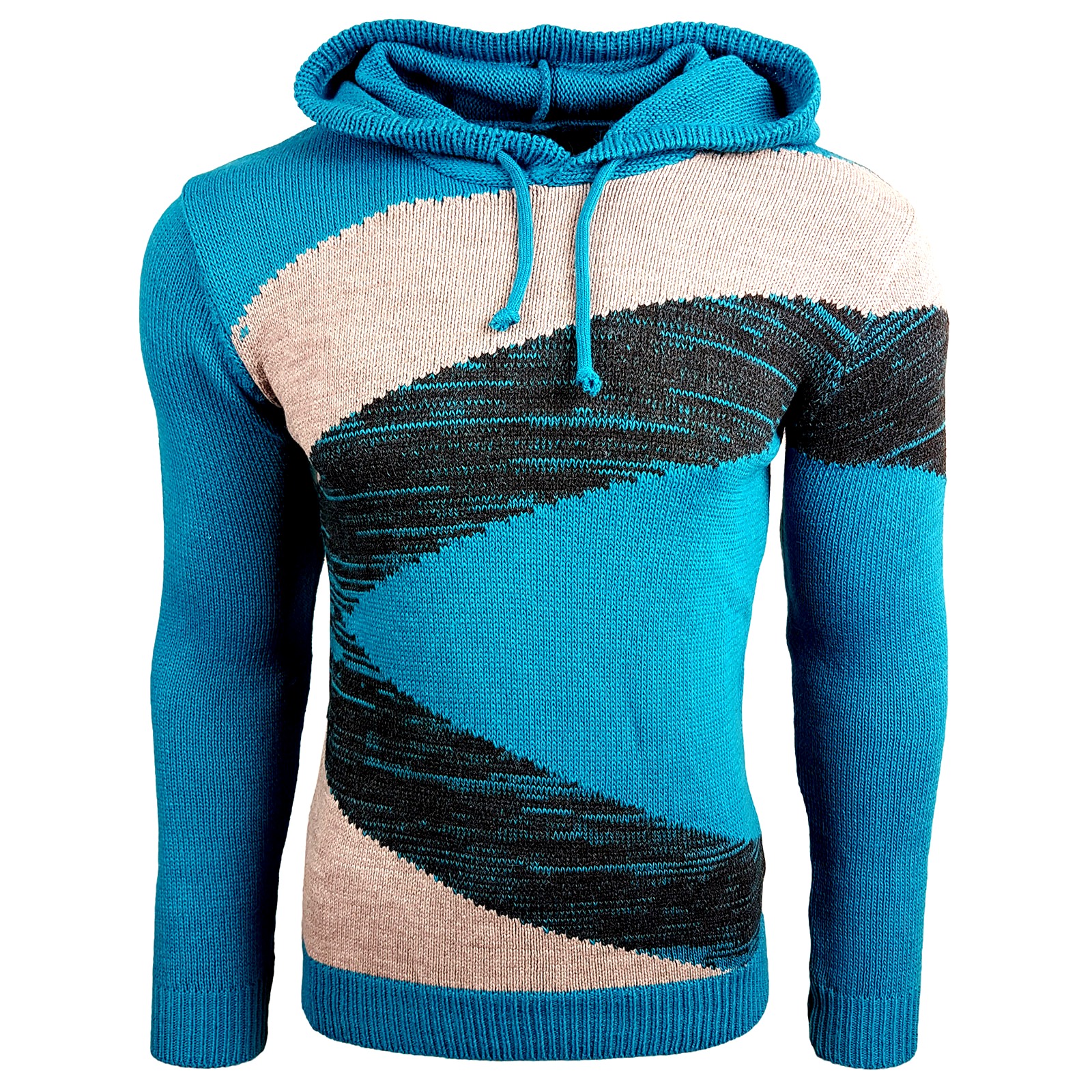 Men's contrasting color-blocked hooded sweatshirt, slim fit hoodie, 13245 turquoise/grey/anthracite