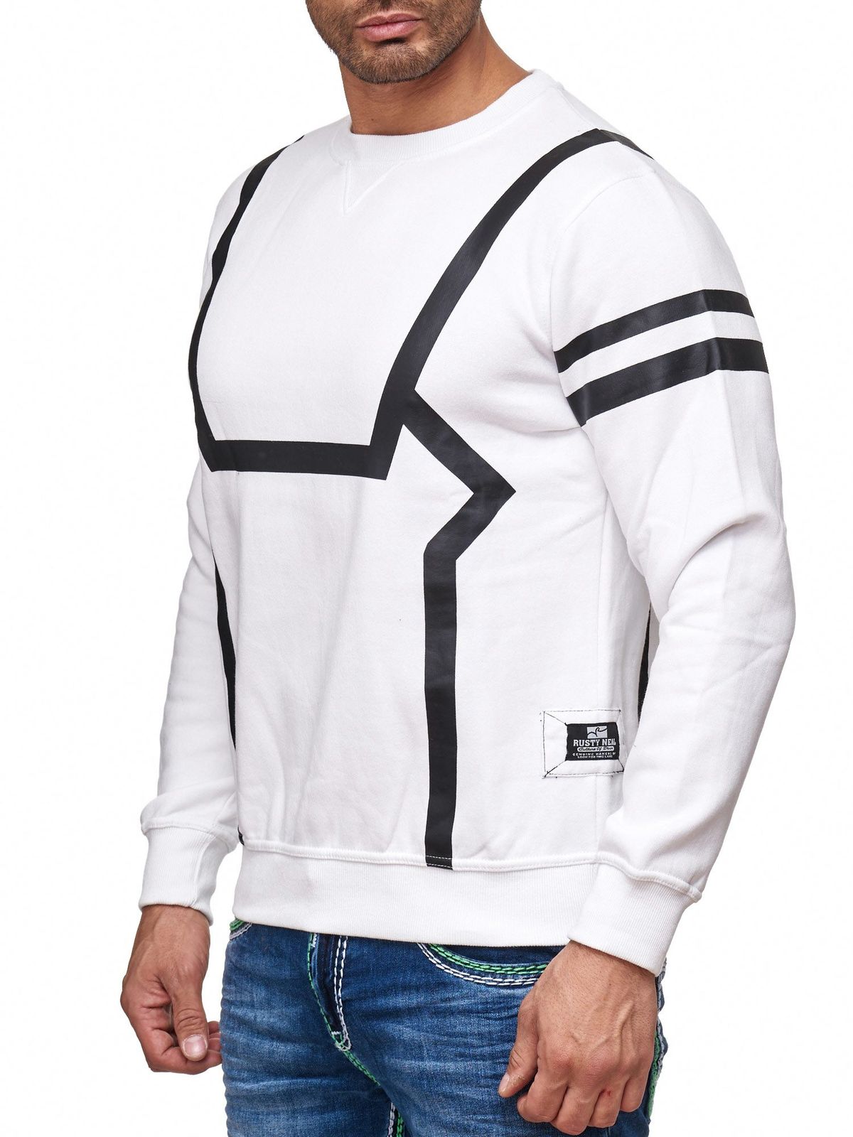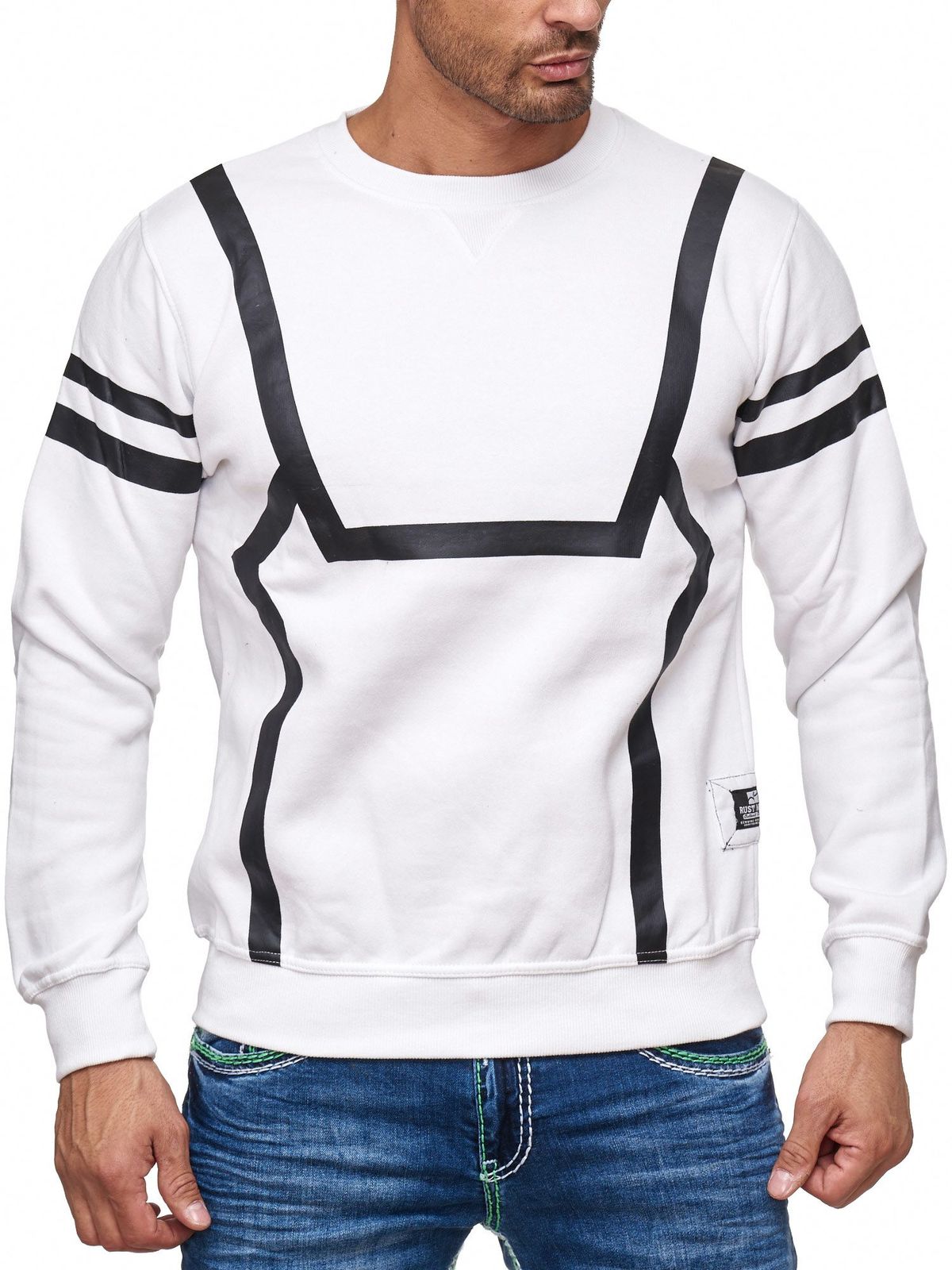 Men's sporty casual sweater with contrast print, crew neck sweater 19045 White