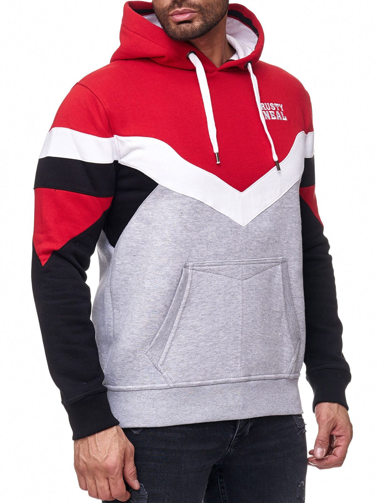 - Trendy hoodie with a striking color-block design for a modern streetwear look