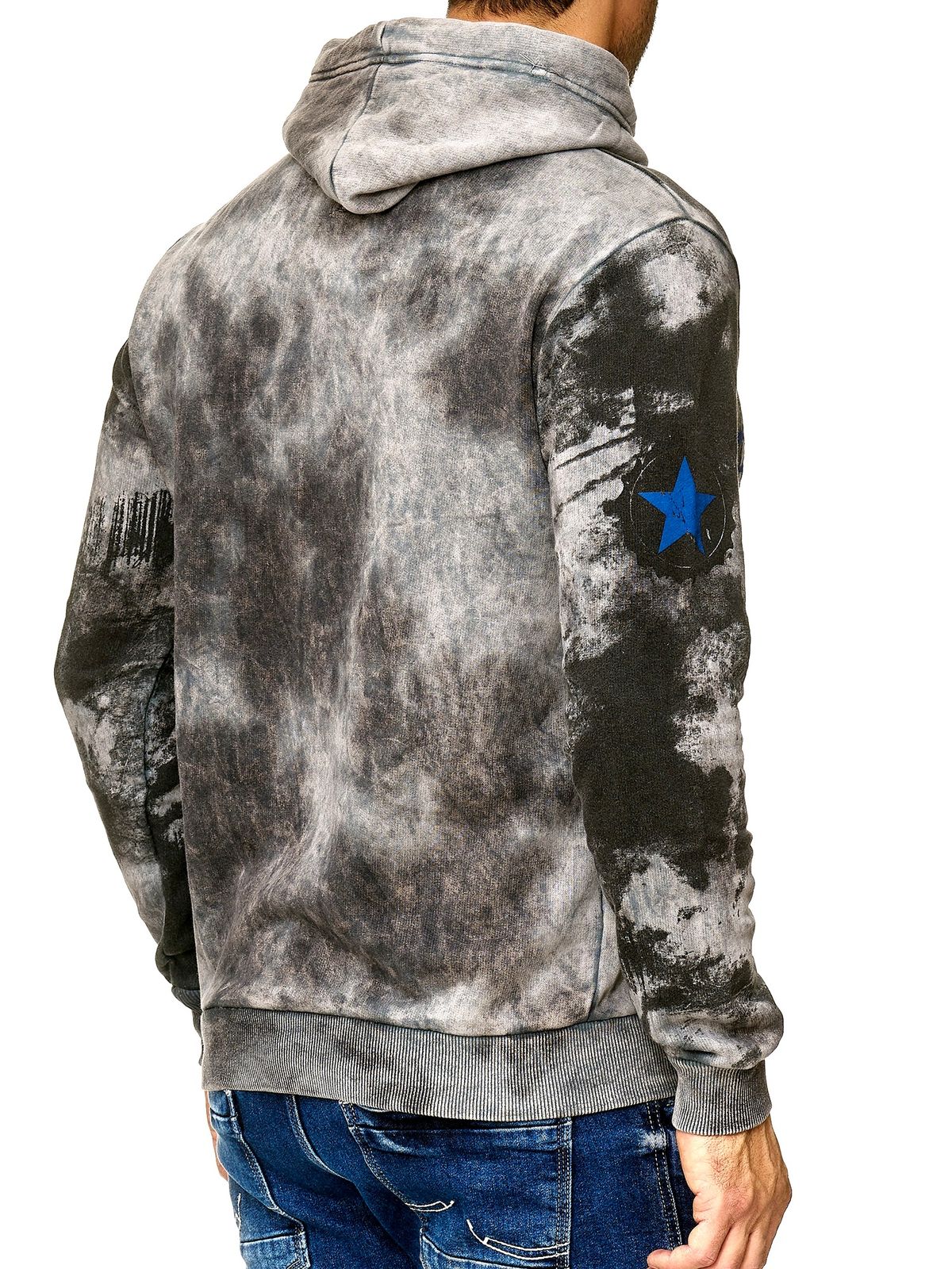 Men's tie-dye hoodie, hooded pullover with vintage print, sweater 19113, anthracite