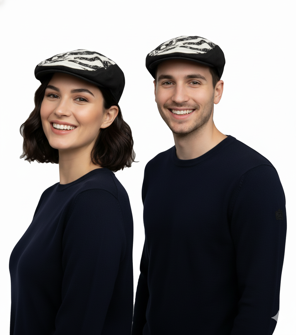 Misfits Unisex Punk Band Flat Cap, Stylish Everyday Cap with Skull Motif, Fan Merchandise, Black/White
