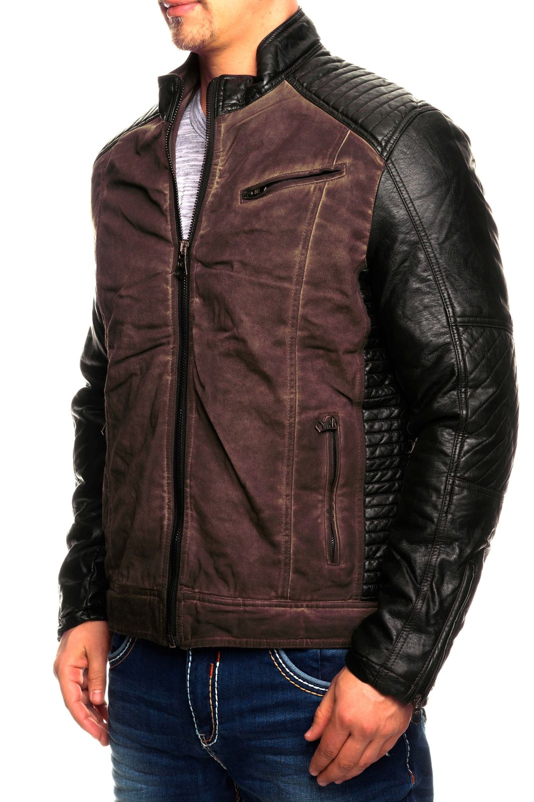 - Stylish men's fabric jacket in a trendy biker design