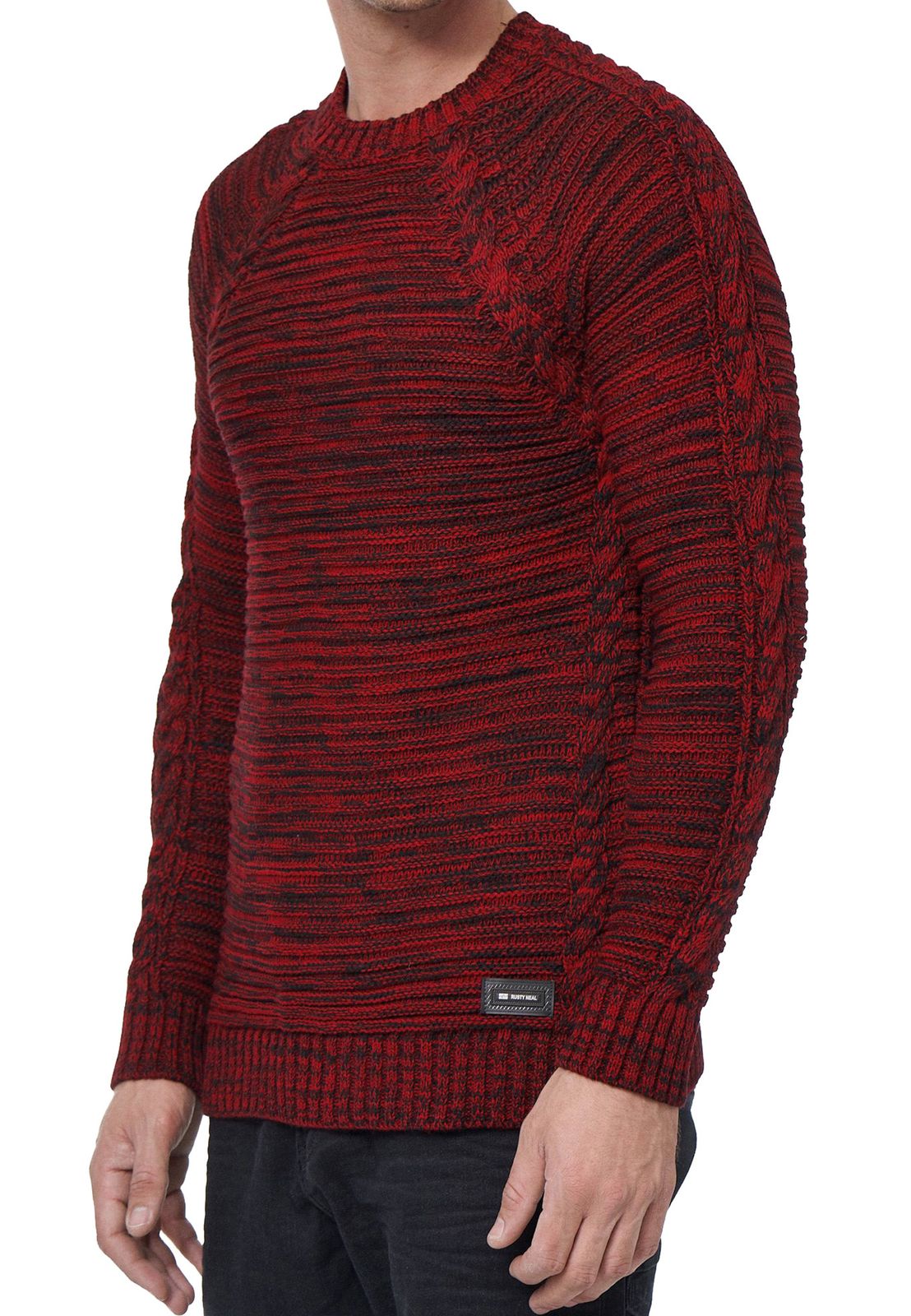 Modern men's chunky knit sweater with cable details and crew neck, slim fit knit sweater 13386 Red
