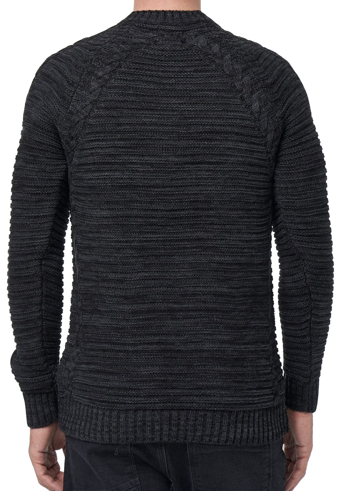 Modern men's chunky knit sweater with cable details and round neck, slim fit knit sweater 13386 Black