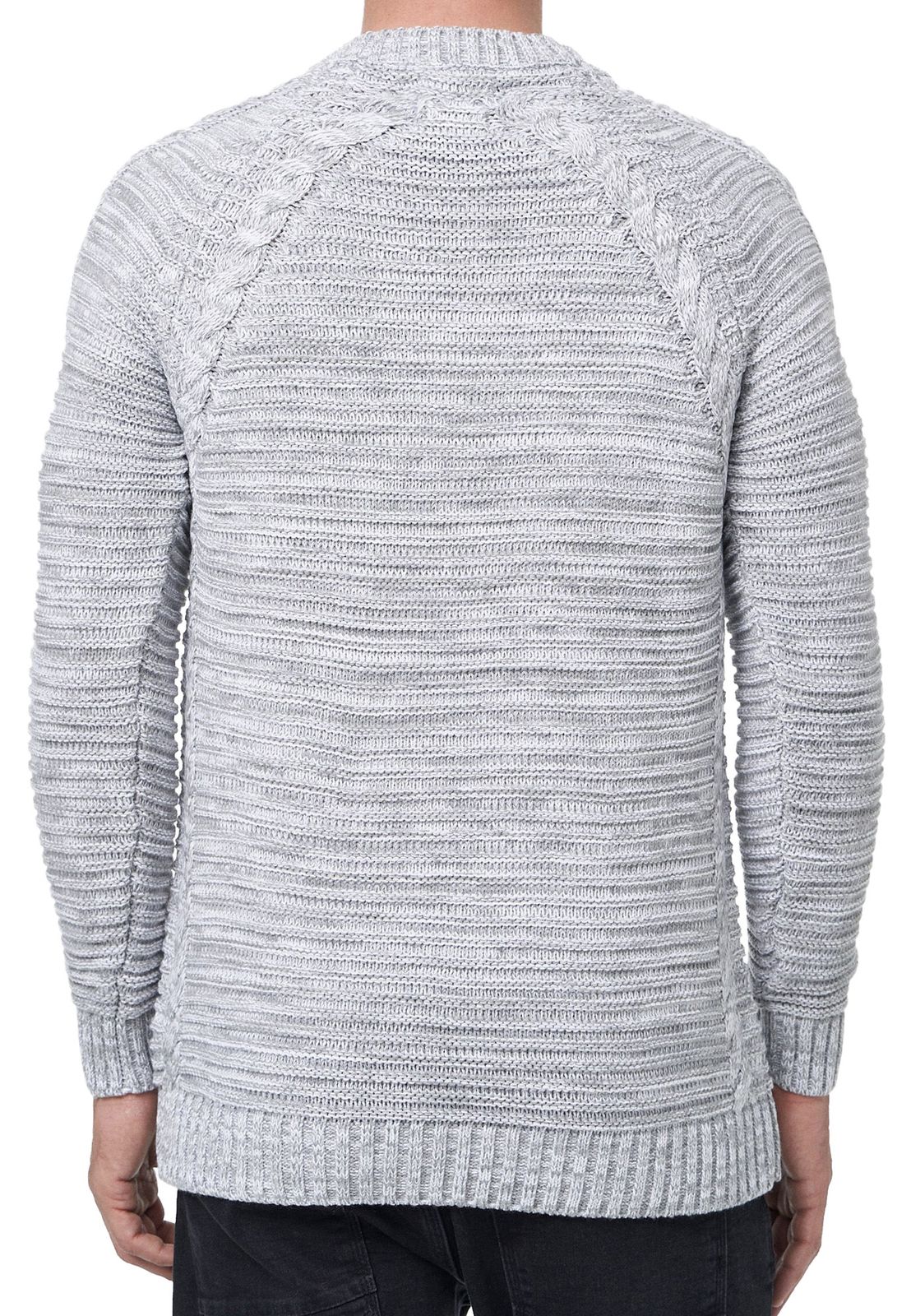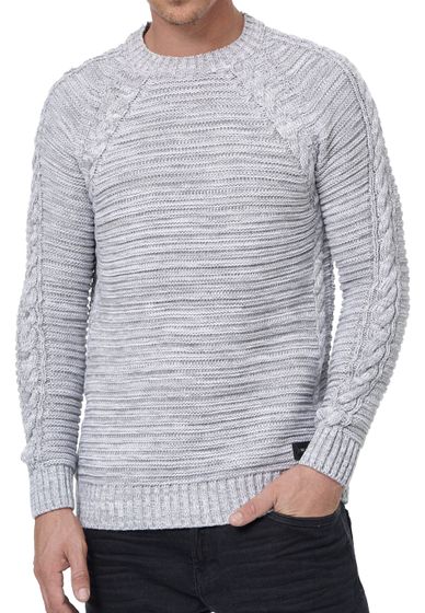 Modern men's chunky knit sweater with cable details and round neck, slim fit knit sweater 13386 Grey
