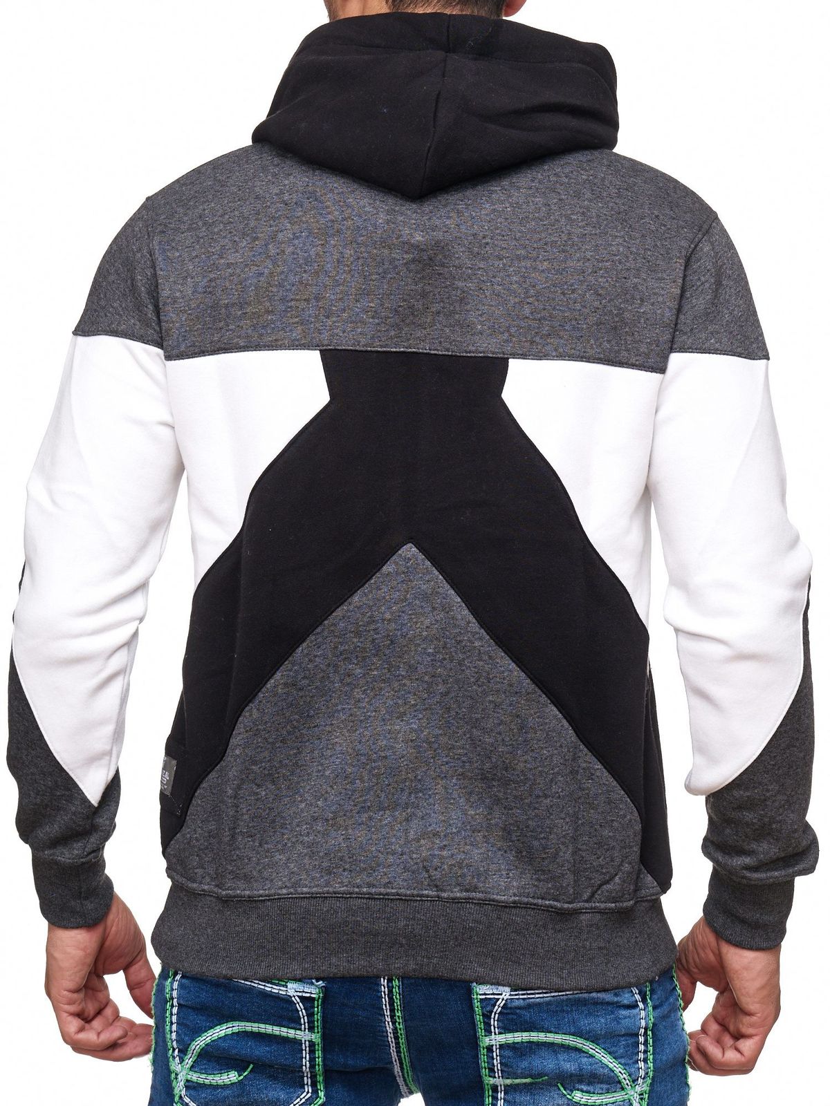 Modern men's colorblock hooded sweatshirt with kangaroo pocket, regular fit sweater, 19042, black