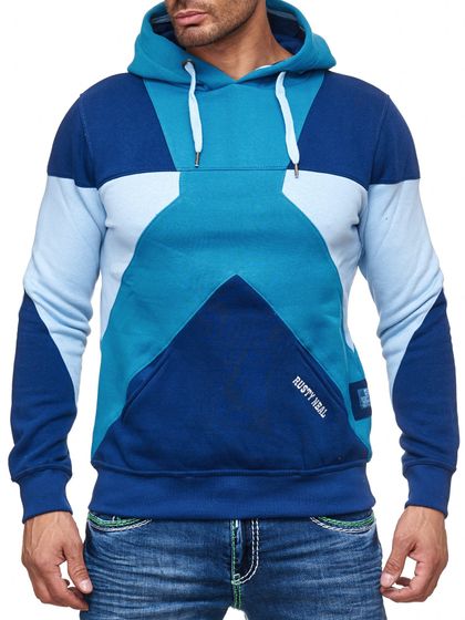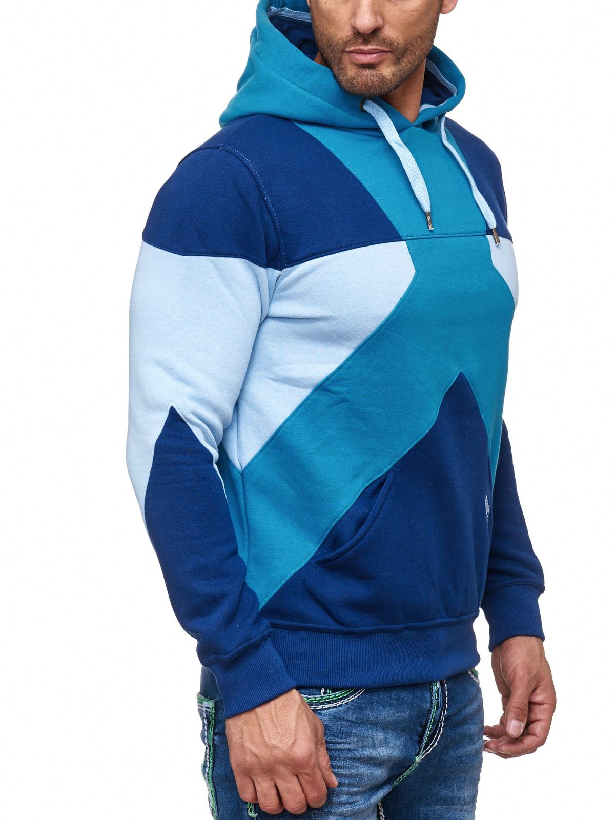 Modern men's colorblock hooded sweatshirt with kangaroo pocket, regular fit sweater, 19042 Petrol