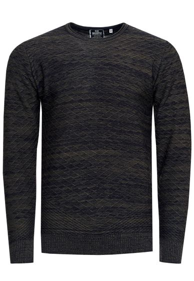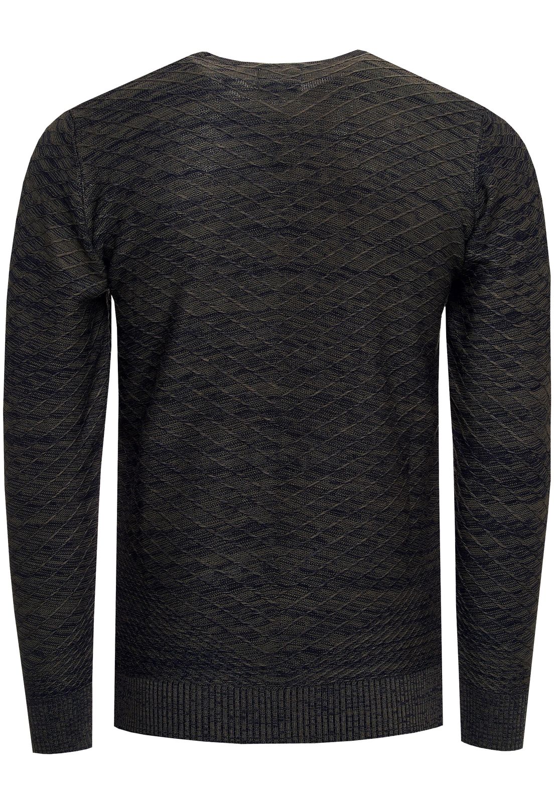 Modern men's fine-knit sweater with textured pattern, crew neck sweater 13371 Khaki