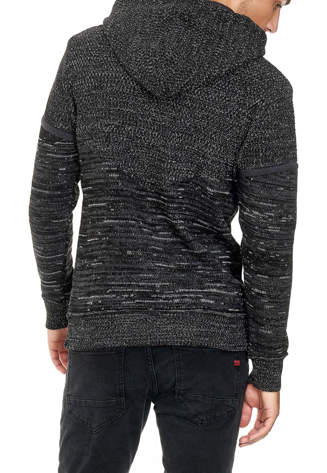 - Stylish men's hooded knit sweater in a modern melange design