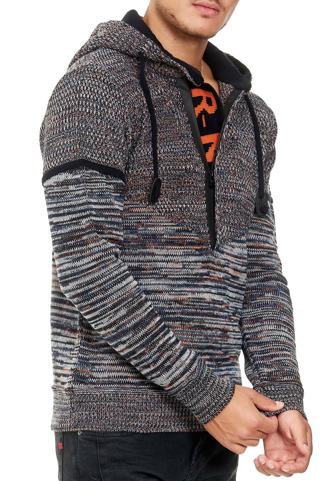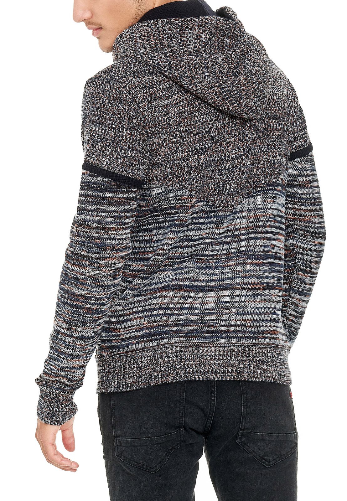 - Stylish men's hooded knit sweater in a modern melange design