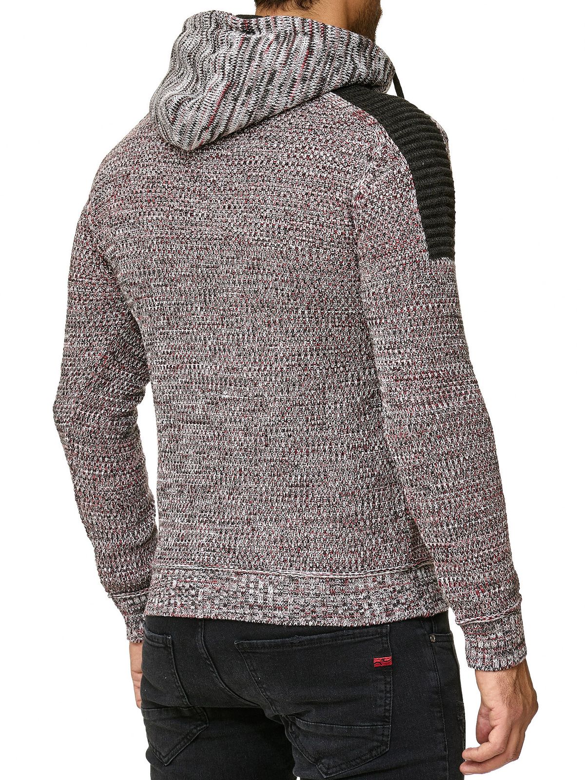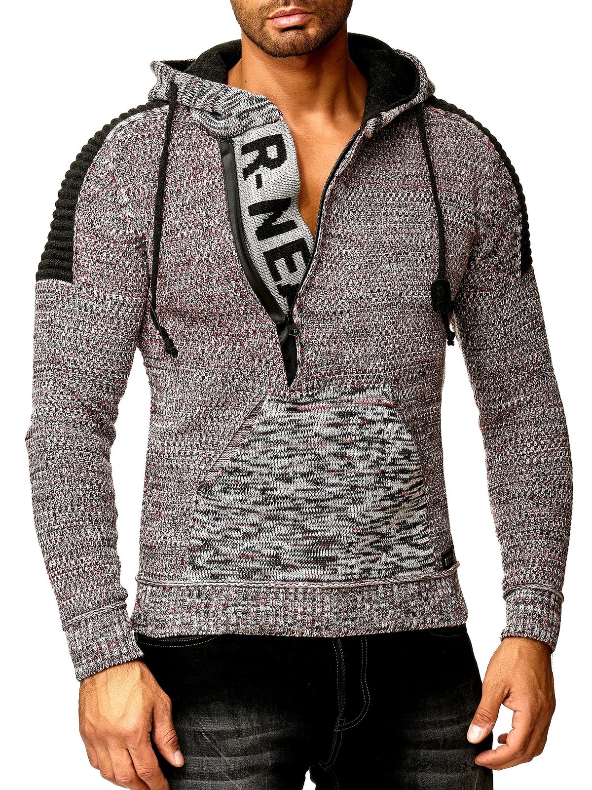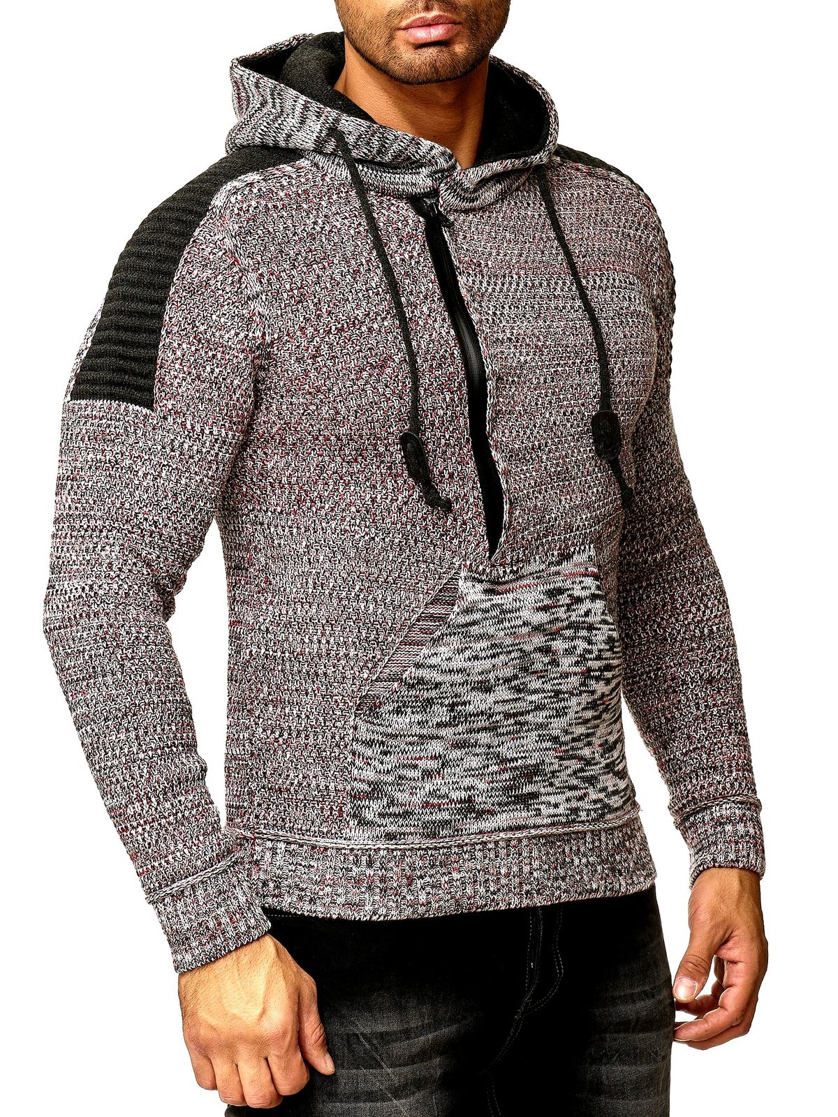 Modern Men's Knit Sweater Hooded Pullover Chunky Knit Hoodie Knit Jacket 13290 Grey / Red