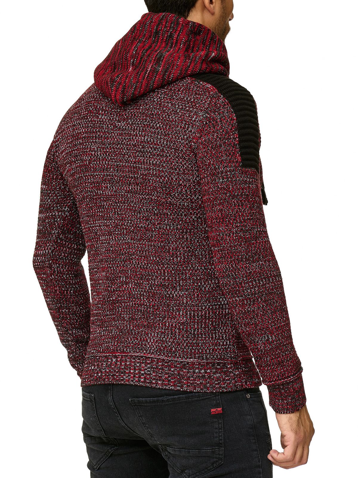 Modern Men's Knit Sweater Hooded Pullover Chunky Knit Hoodie Knit Jacket 13290 Red