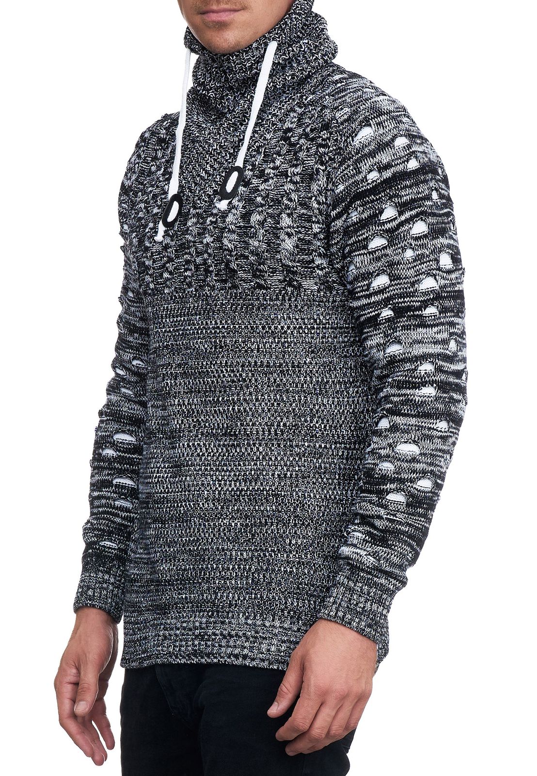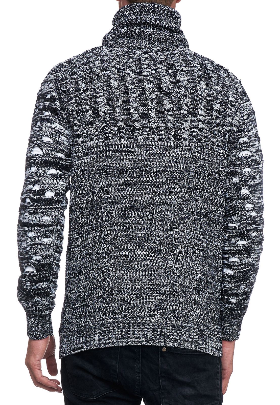 Modern men's knit sweater with roll neck and contrasting knit textured sweater 13366 Black