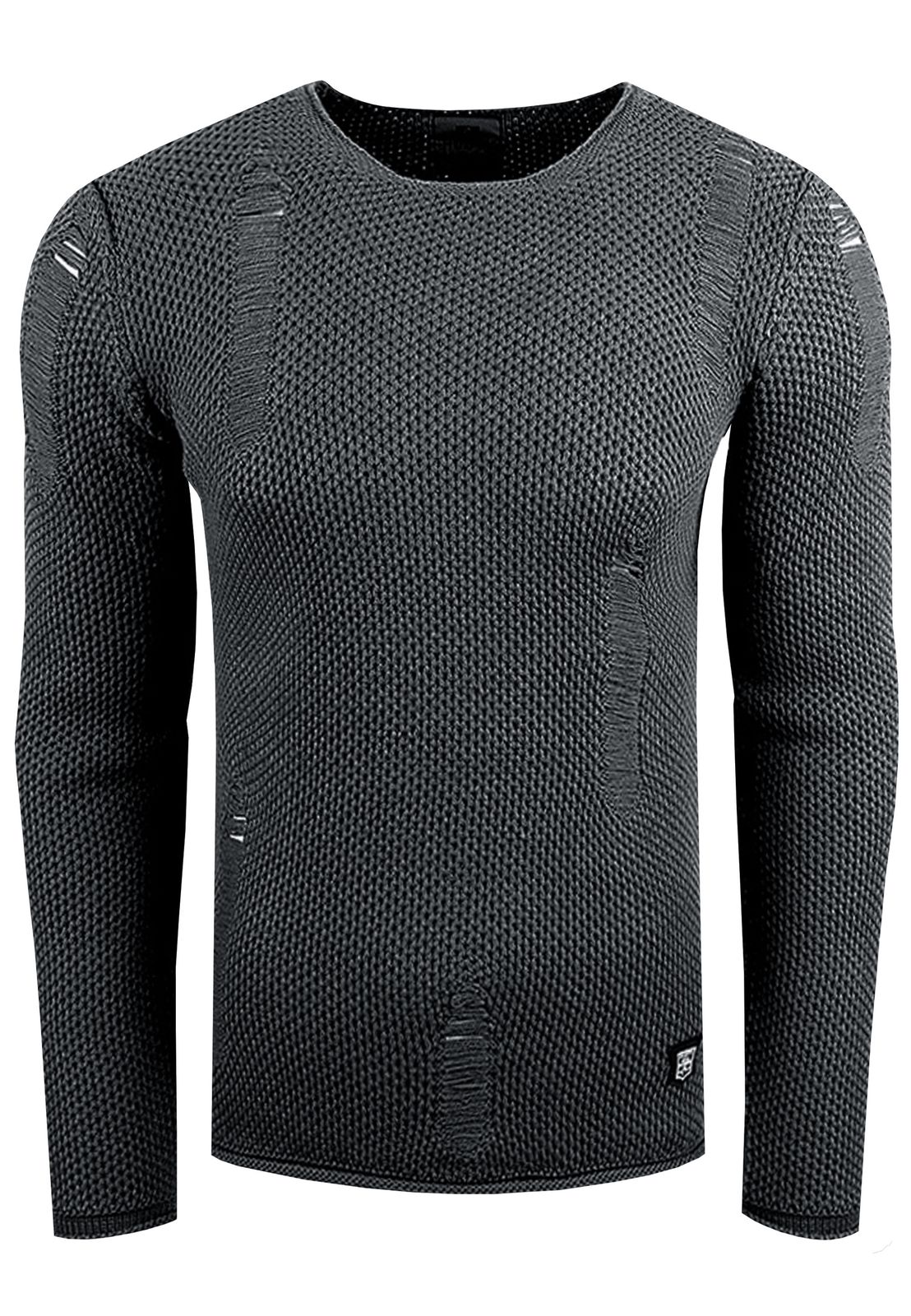 Modern men's knitted sweater in a distressed look, slim fit, crew neck sweater with textured knit, 13249 anthracite