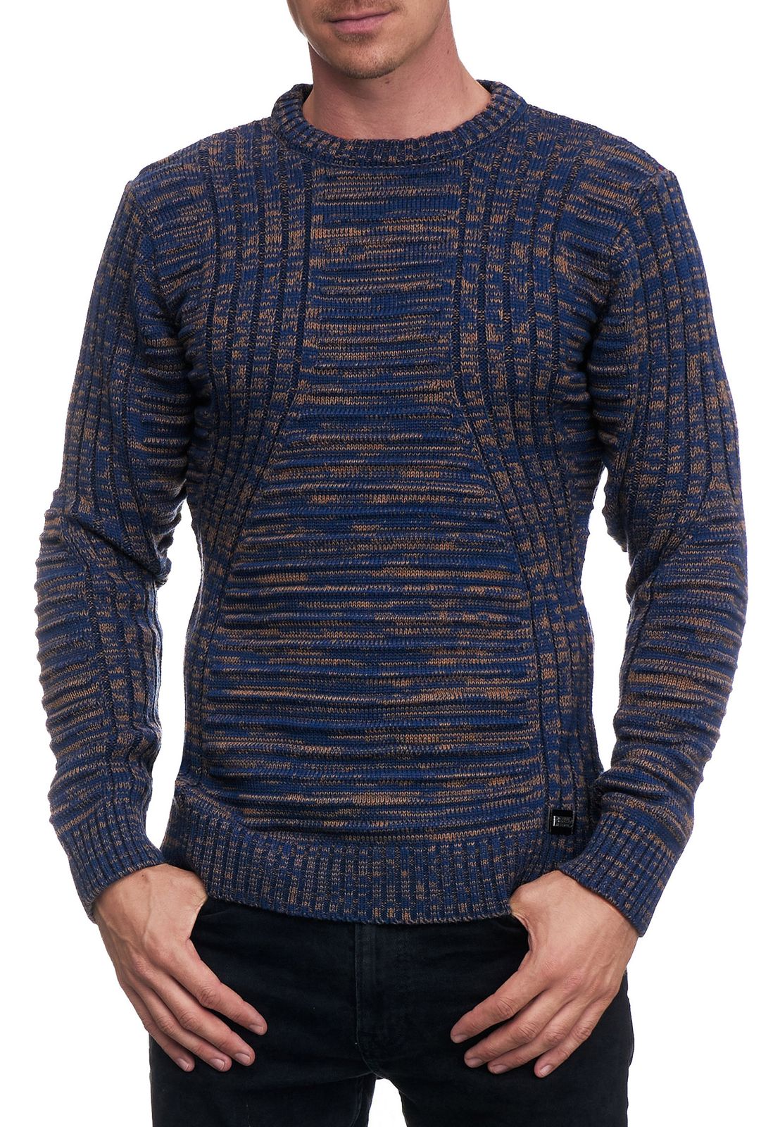 Modern men's knitted sweater with textured pattern, crew neck sweater 13361 Camel