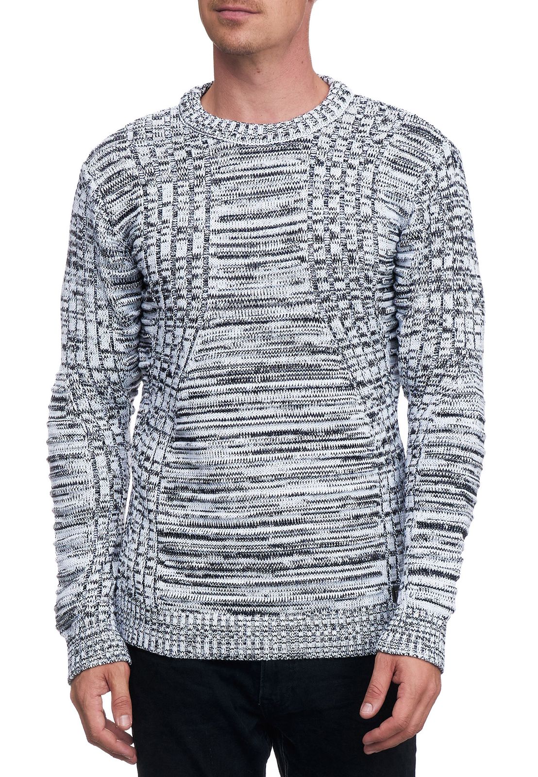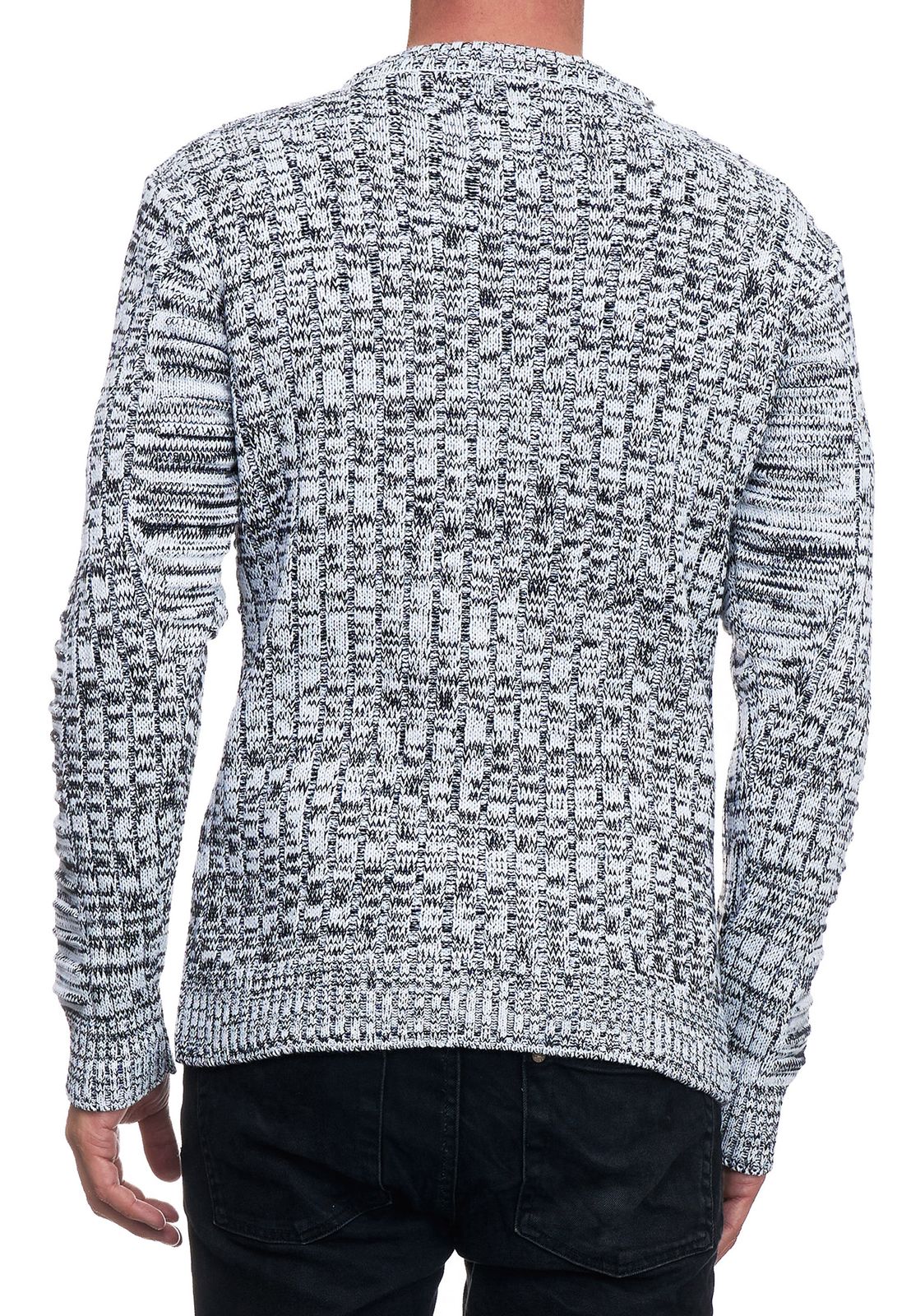 Modern men's knitted sweater with textured pattern, crew neck sweater 13361 White