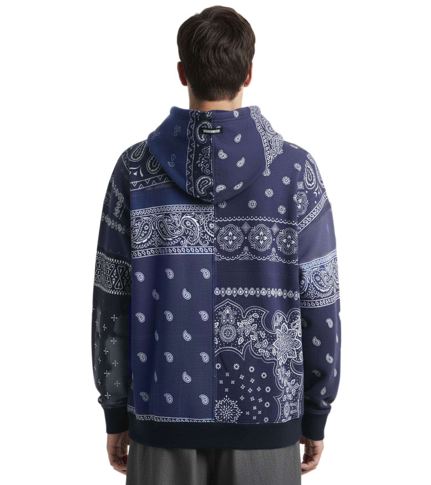 Neighborhood Bandana Chopped EC-Hooded Men's Hoodie with All-Over Bandana Pattern Streetwear Navy