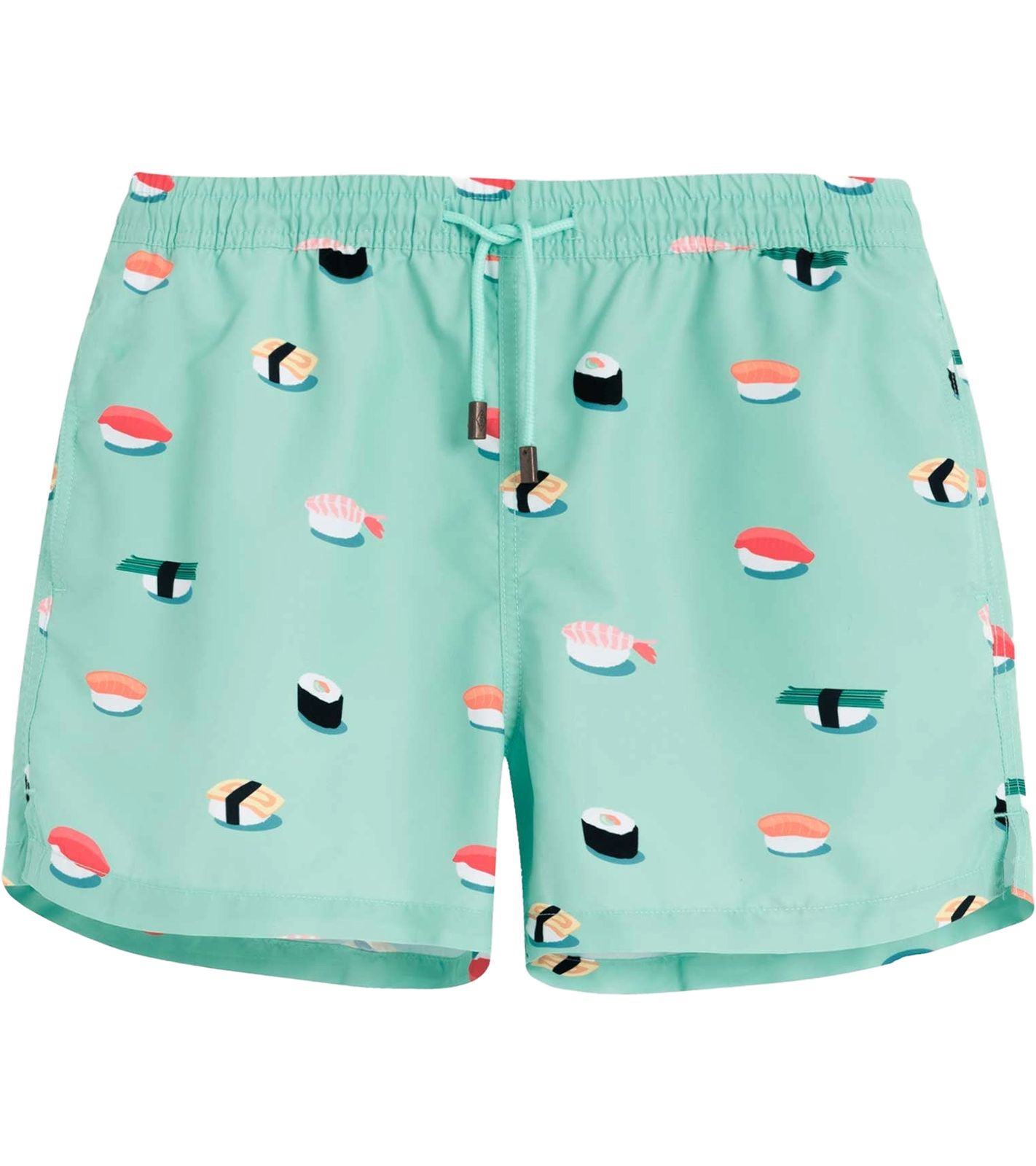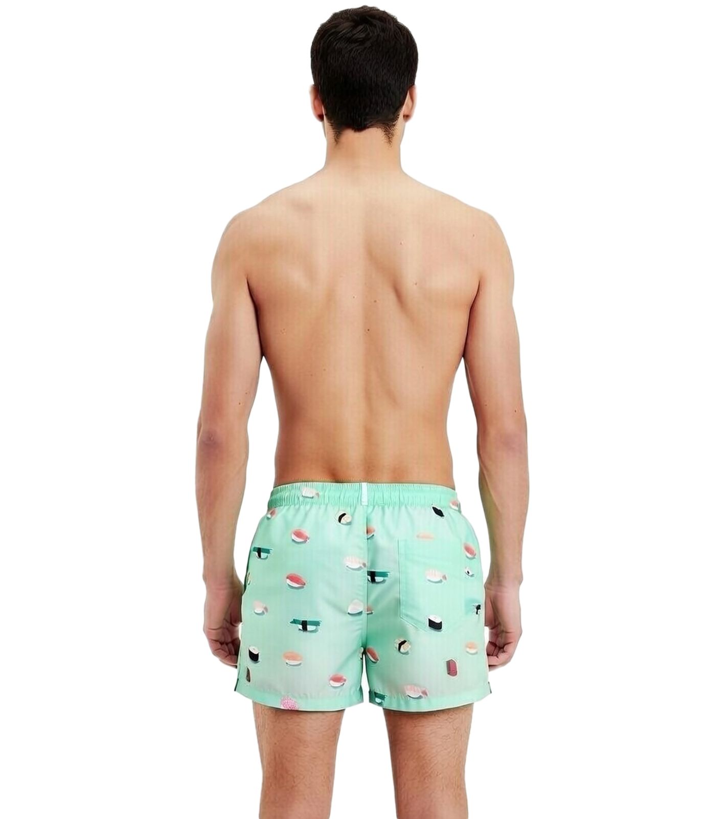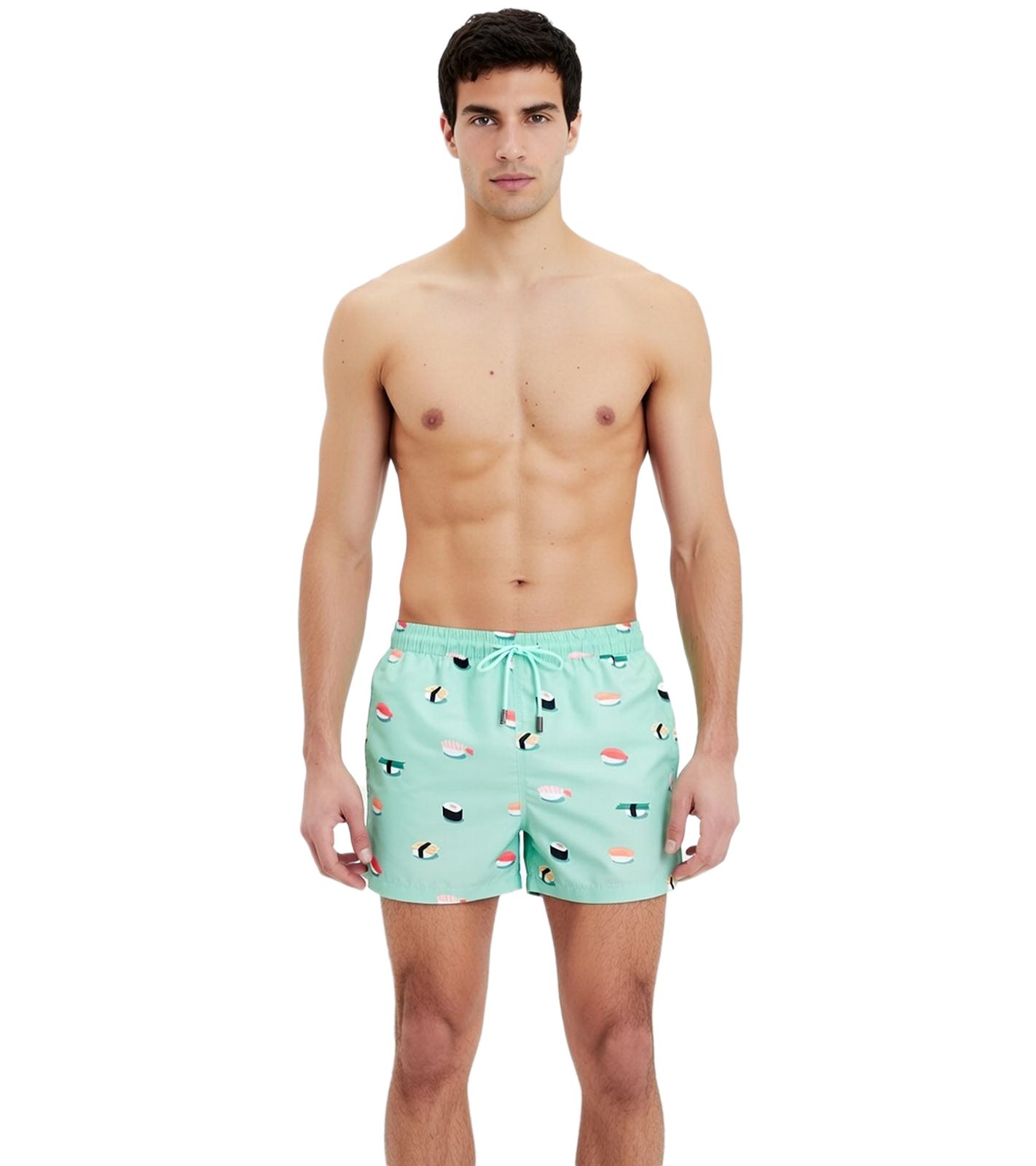 Nikben Men's Swim Trunks, Fashionable Swim Shorts with Sushi Print, 1003M, Turquoise