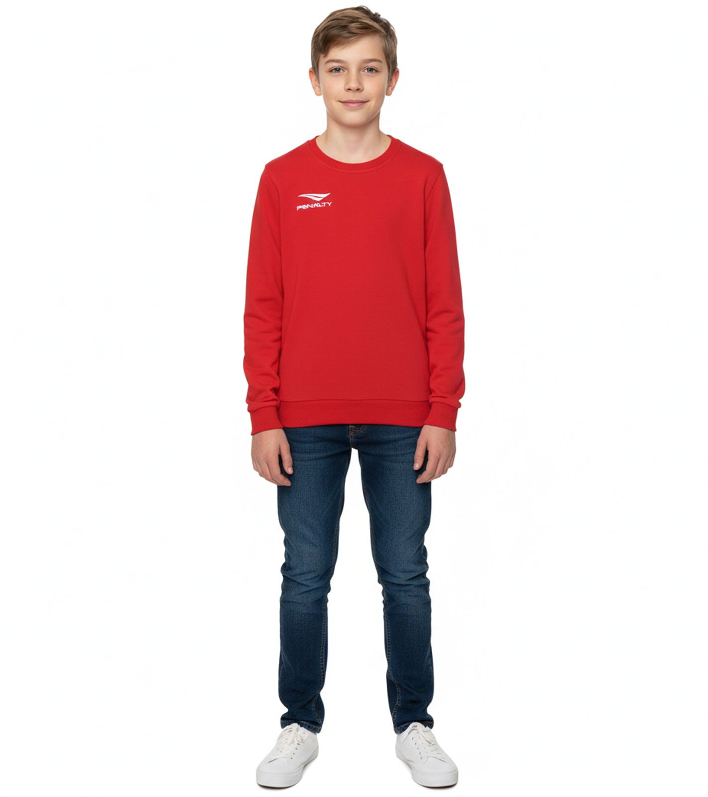 PENALTY Era Roundneck Co Jr Kids' Sweater with Logo Embroidery, Cotton Sweater for Teen Boys & Girls, 354710-4000 Red