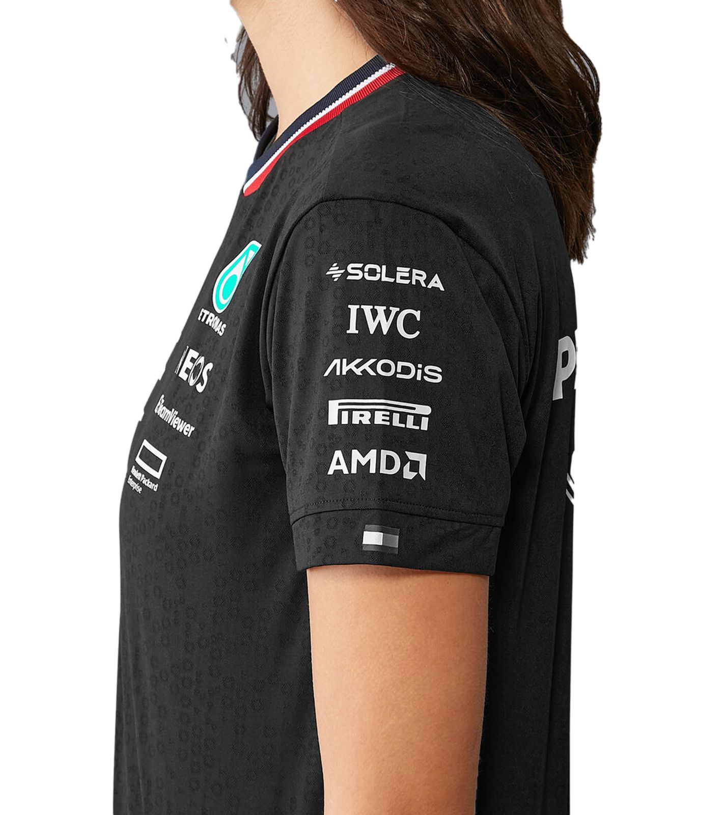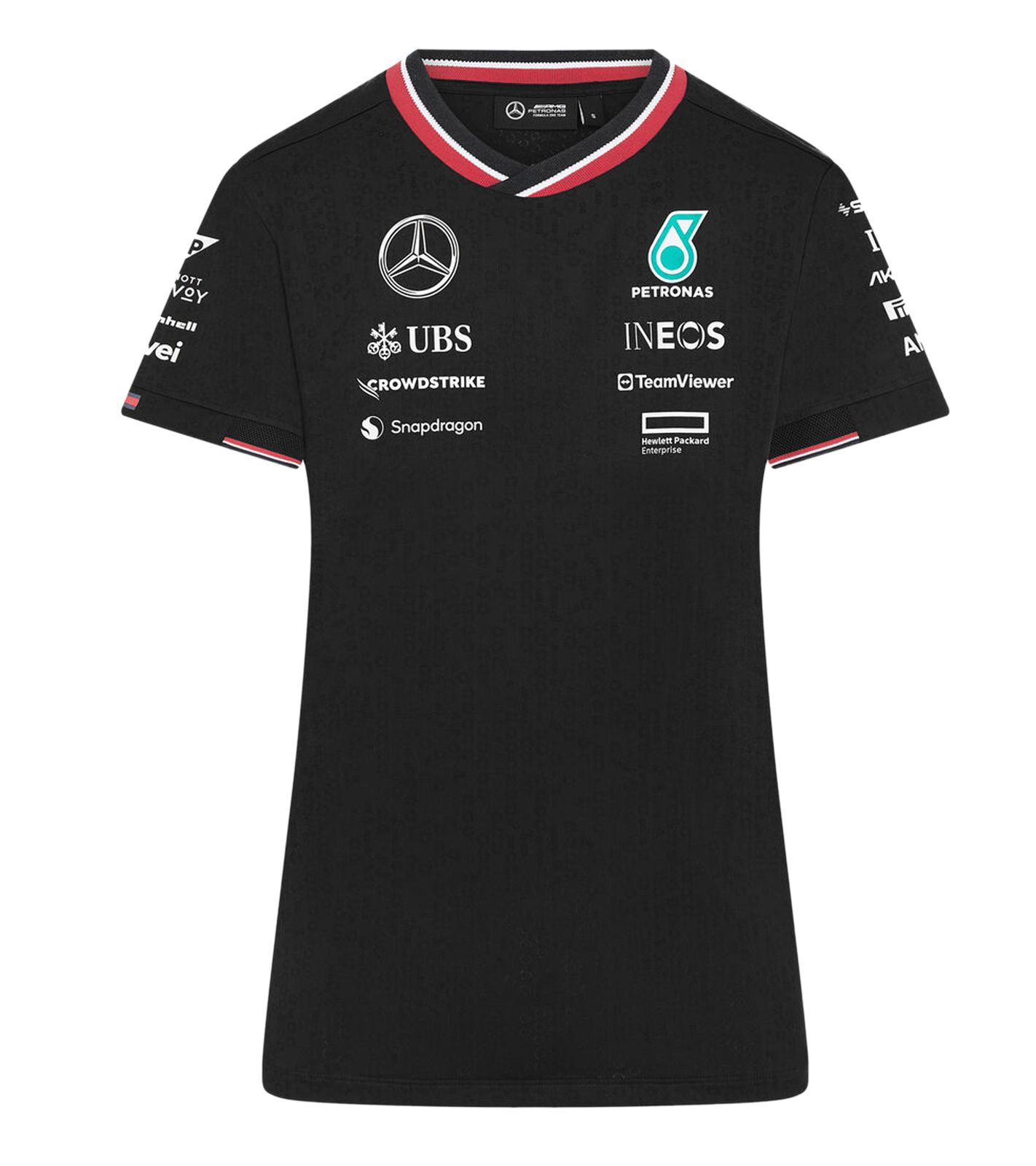 Perforated Mercedes-Benz AMG Petronas F1 Driver Tee Women's T-Shirt with Team and Sponsor Logos Motorsport Shirt 701227951 002 Black
