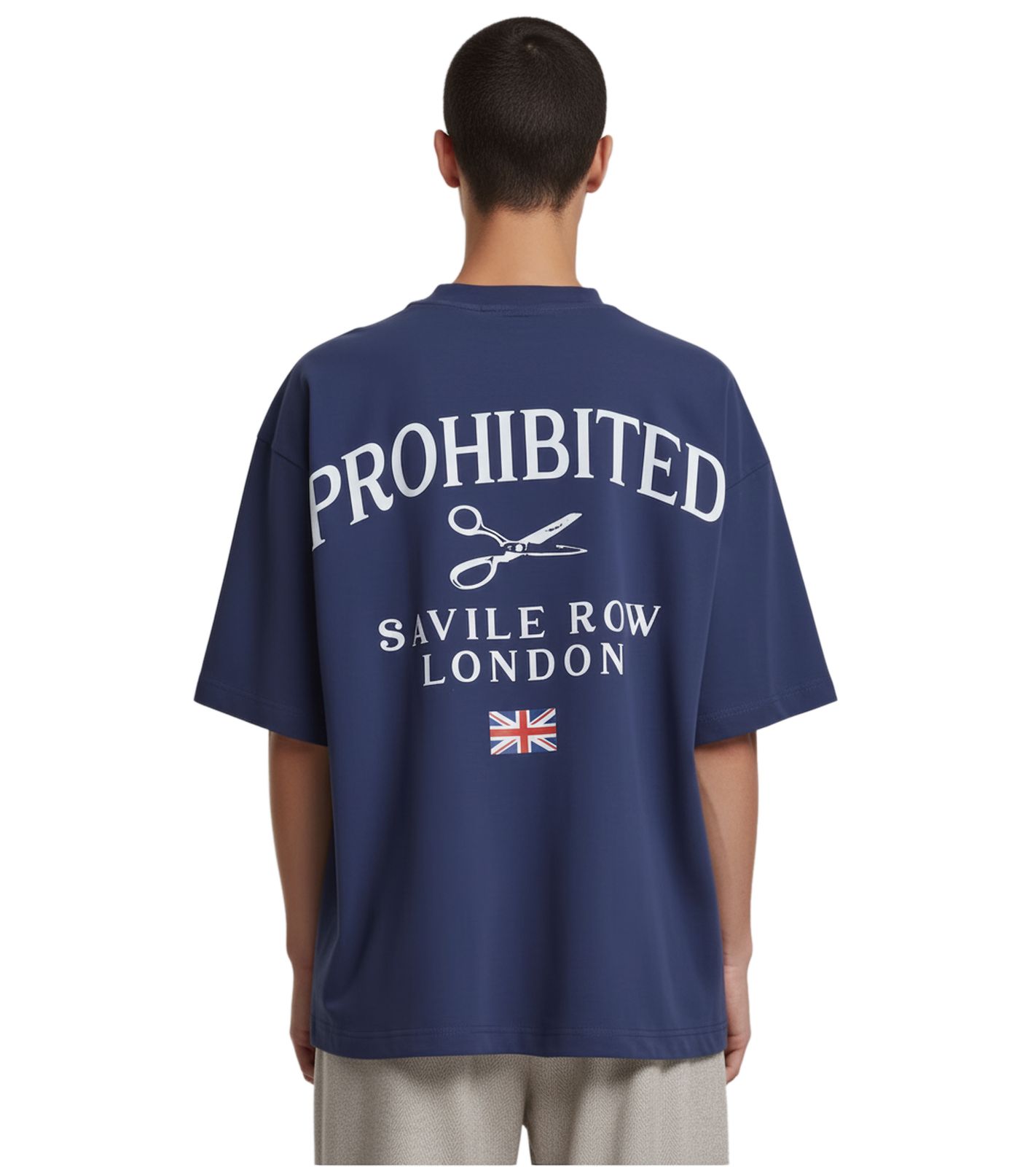 Prohibited Savile Row Team Men's T-Shirt, Cotton Shirt with Eye-Catching Back Print, Short Sleeve, Oversized Fit, PC-006-042, Navy