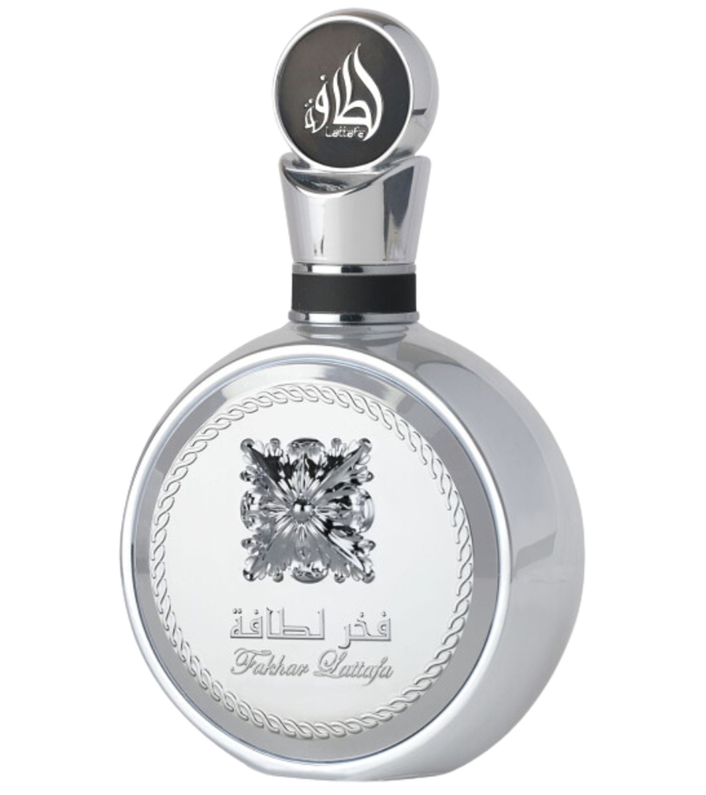 Refined Lattafa Fakhar Platinum Unisex Eau de Parfum, a sensual oriental body fragrance for women and men, 100ml, silver bottle
