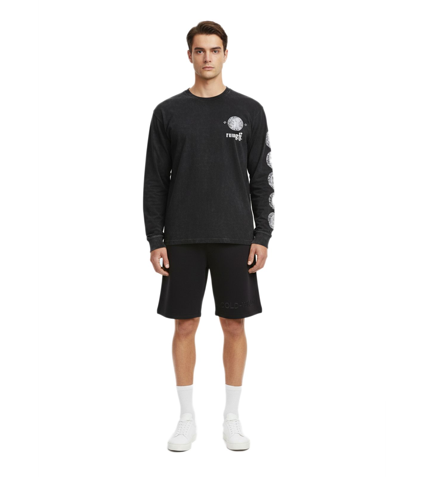 ROUGH Ancient Emblem Longsleeve Shirt for Men with a Distinctive Wash and Urban Look, Black
