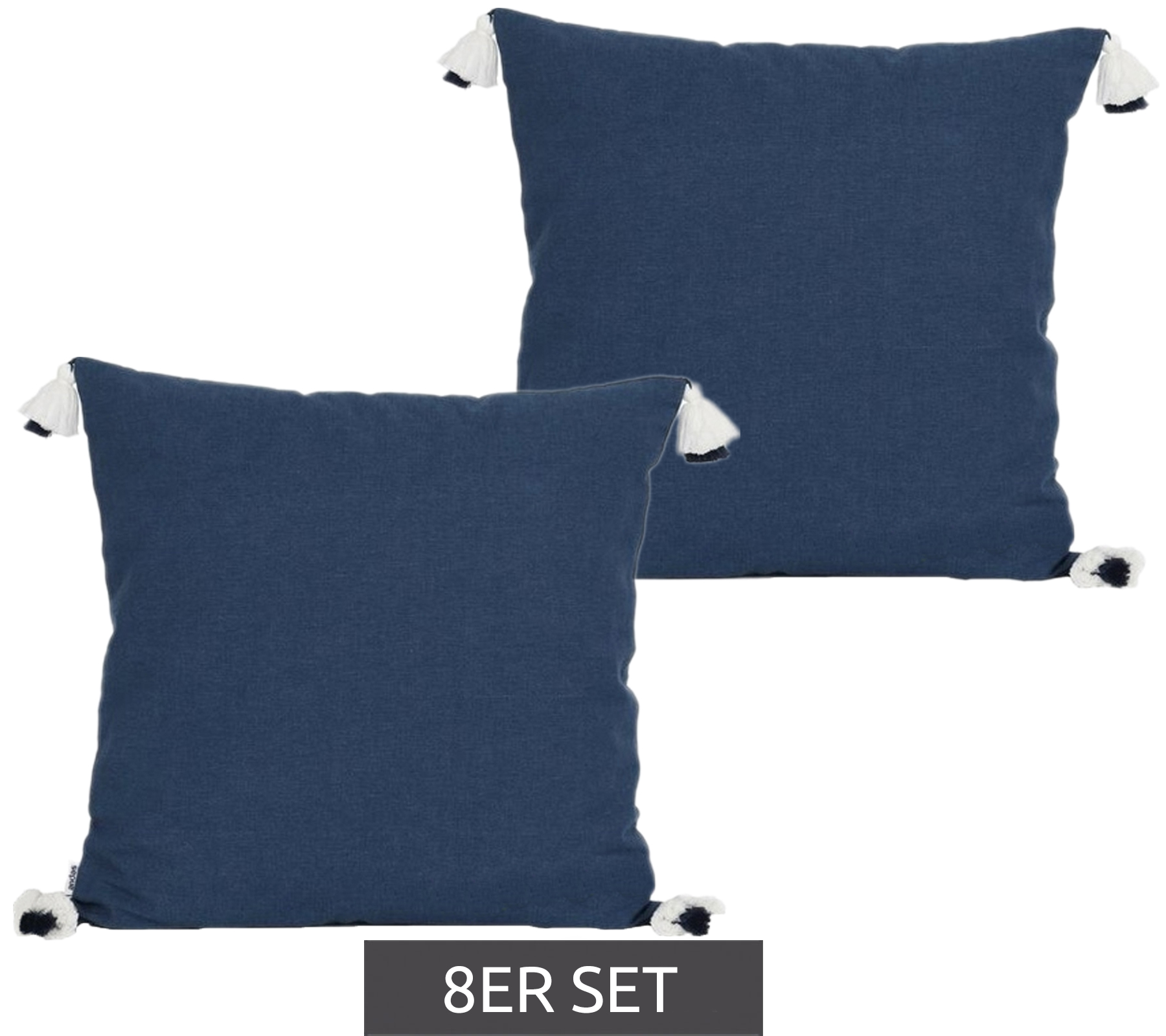 Set of 8 andas sustainable cushion covers with zippers, cotton cushions with pompom details, 50x50cm, home decoration, 86249208, blue