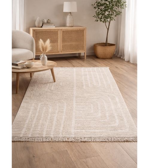 Soft Kilim Rug with Fringes, Living Room Rug, Home Accessory, Cotton Rug, Decorative Rug 903706 Beige
