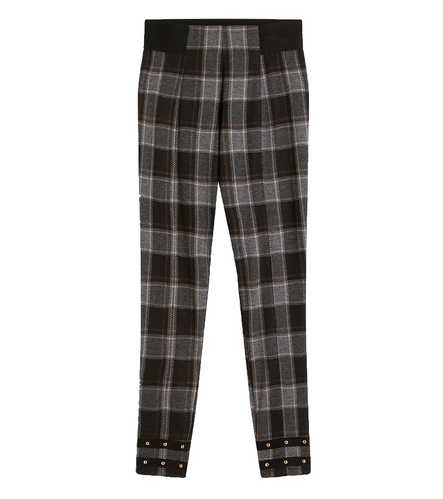 Soft Women's Jeggings, Checkered Bootcut Trousers with Studs, Skinny Fit, 926776 Gray/Black/Gold/Brown