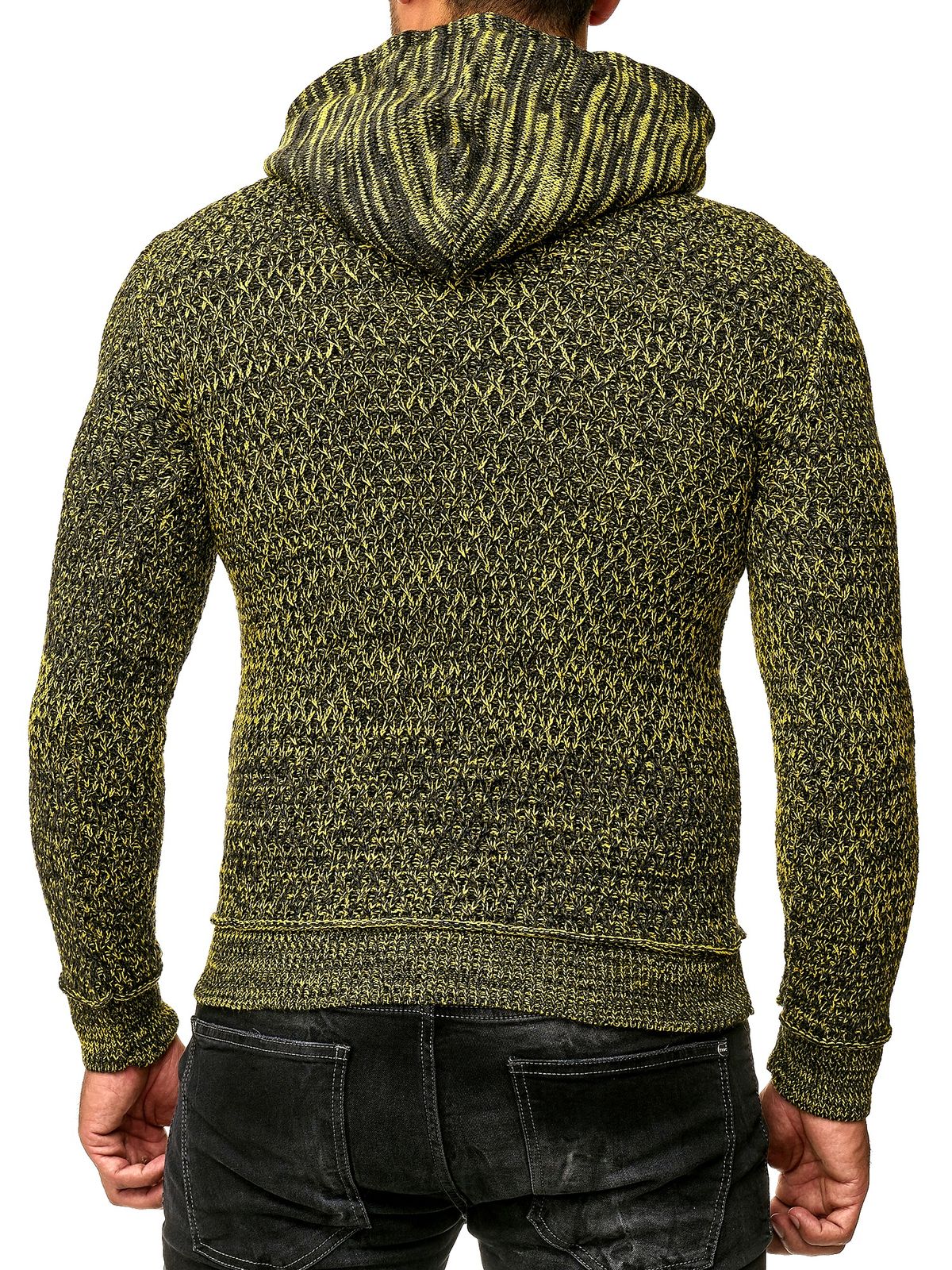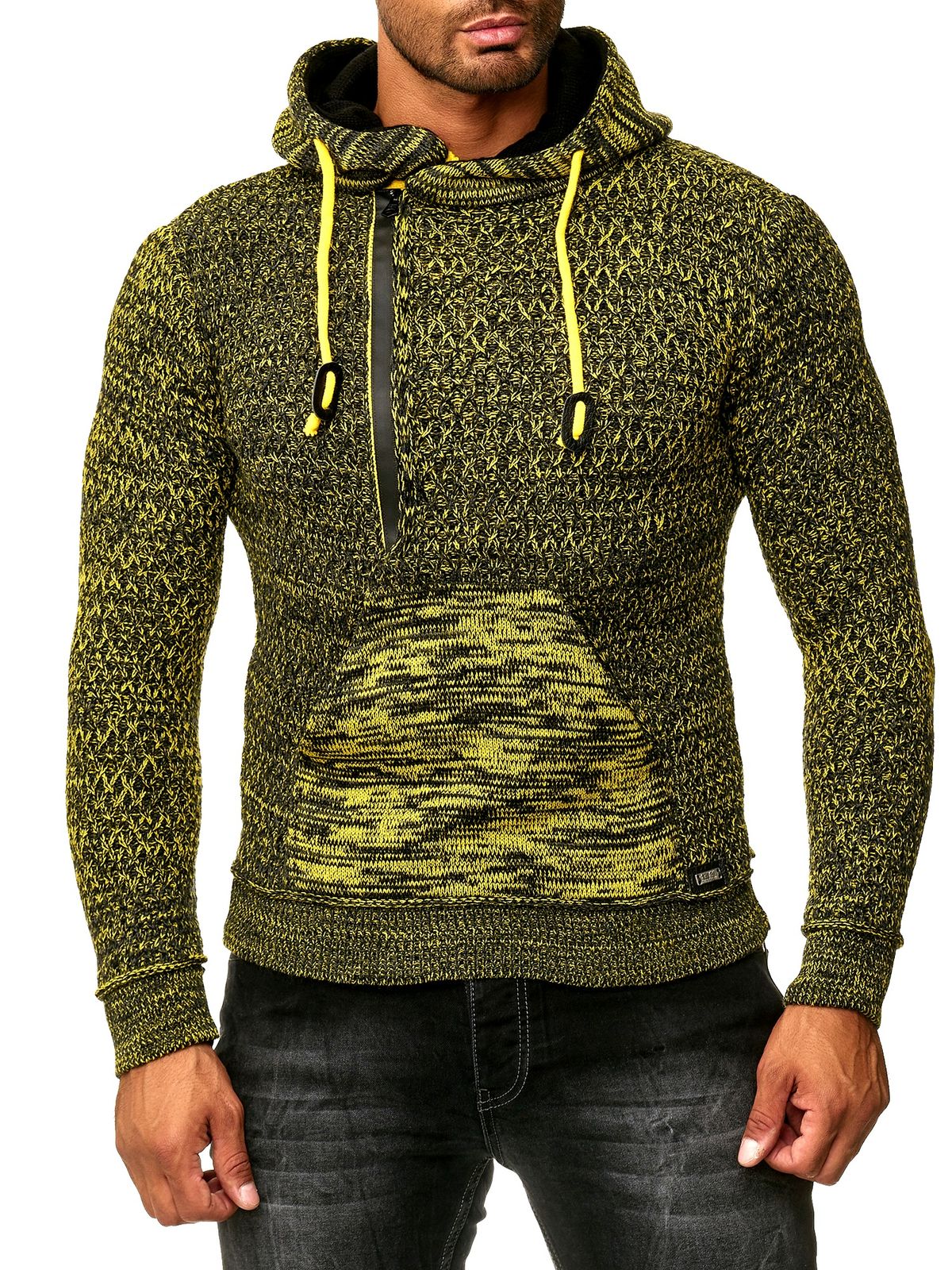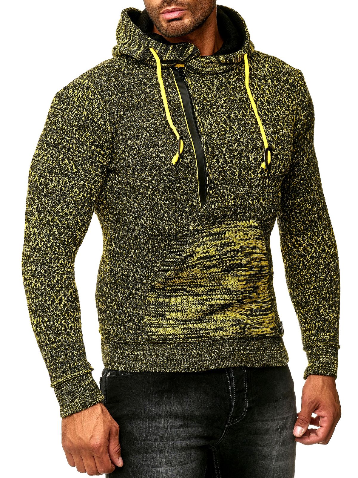 Sporty men's hooded pullover with half-zip and textured knit hoodie sweater 13323 Yellow