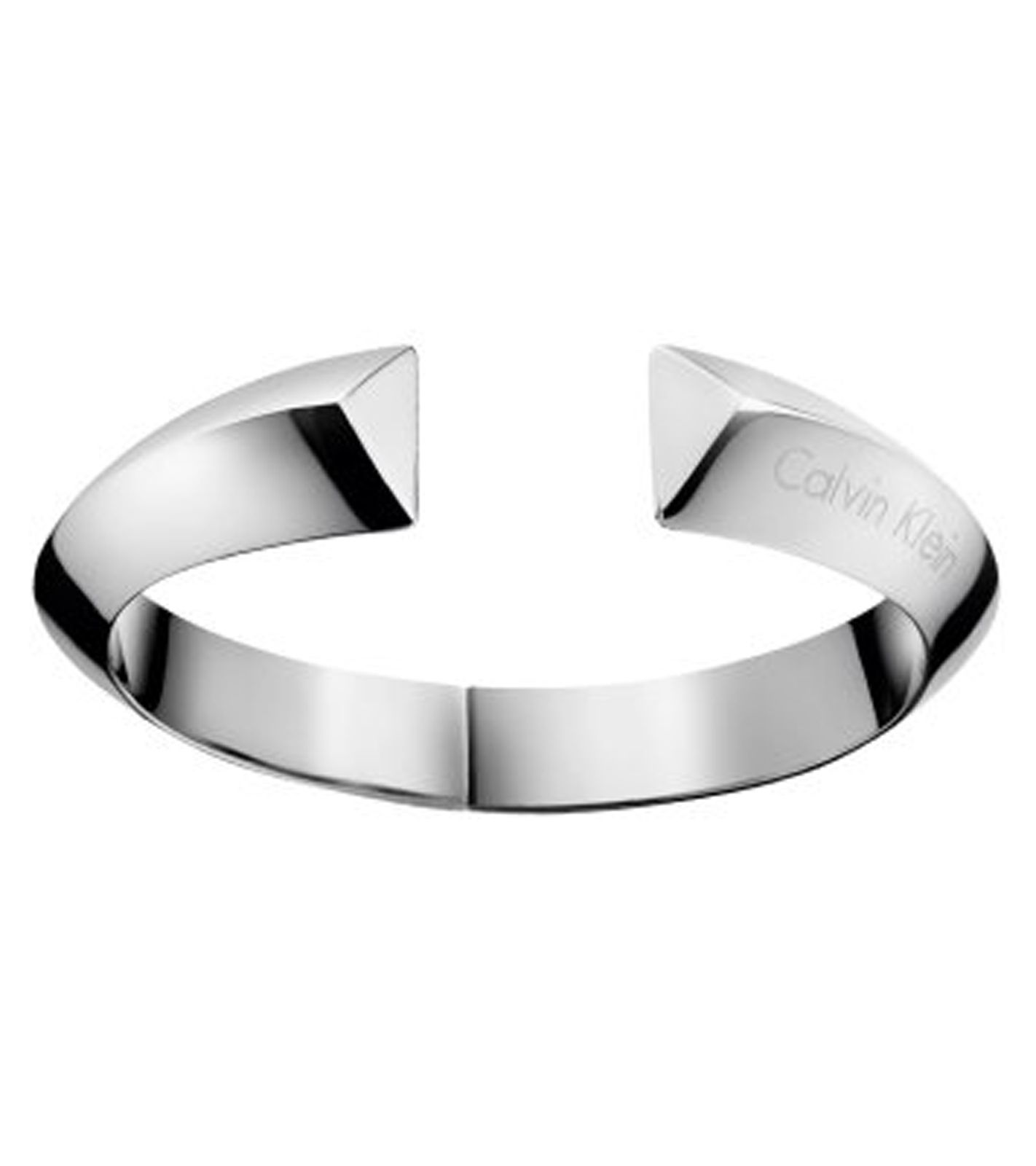 Striking Calvin Klein Women's Bangle, Stainless Steel Bracelet with Architectural Lines, Size XS, KJ4TMD0001, Silver
